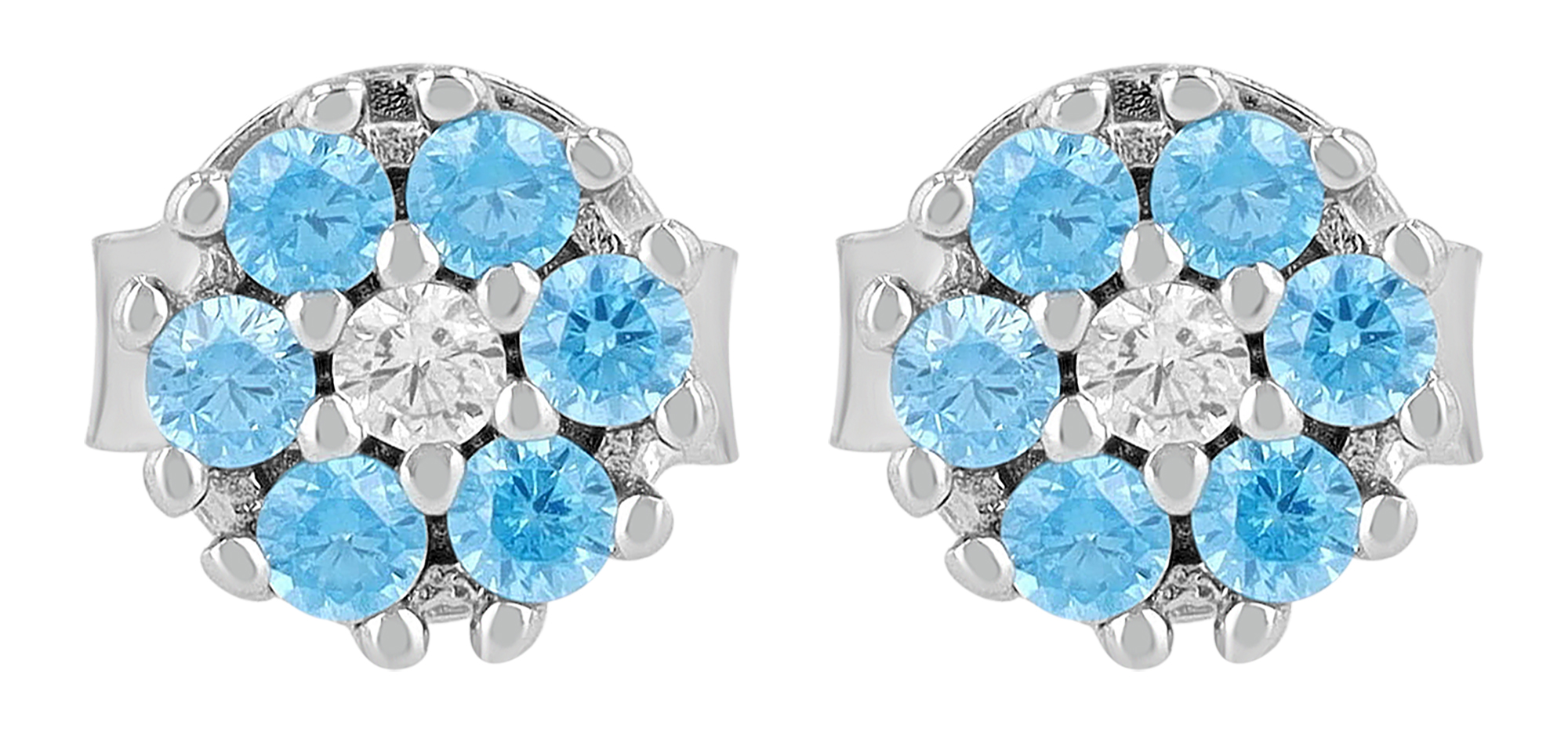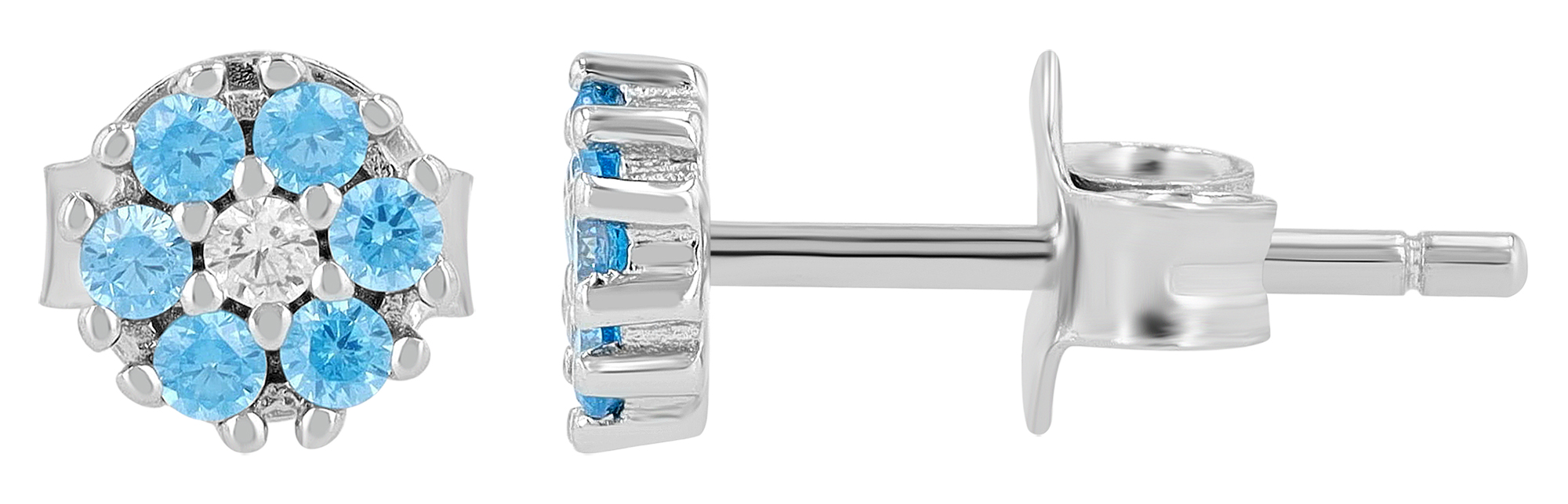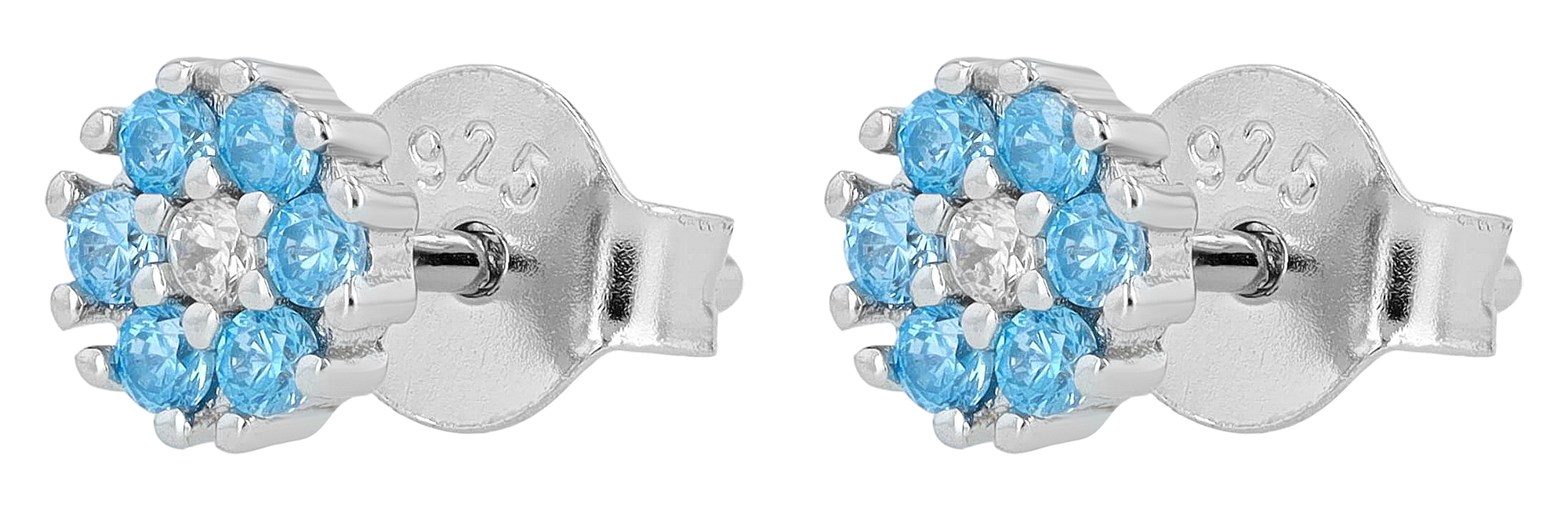 Productinformatie ""Sabi" 925/- Echt Silber Ohrstecker, Zirkonia hellblau, rhodiniert, Blume"