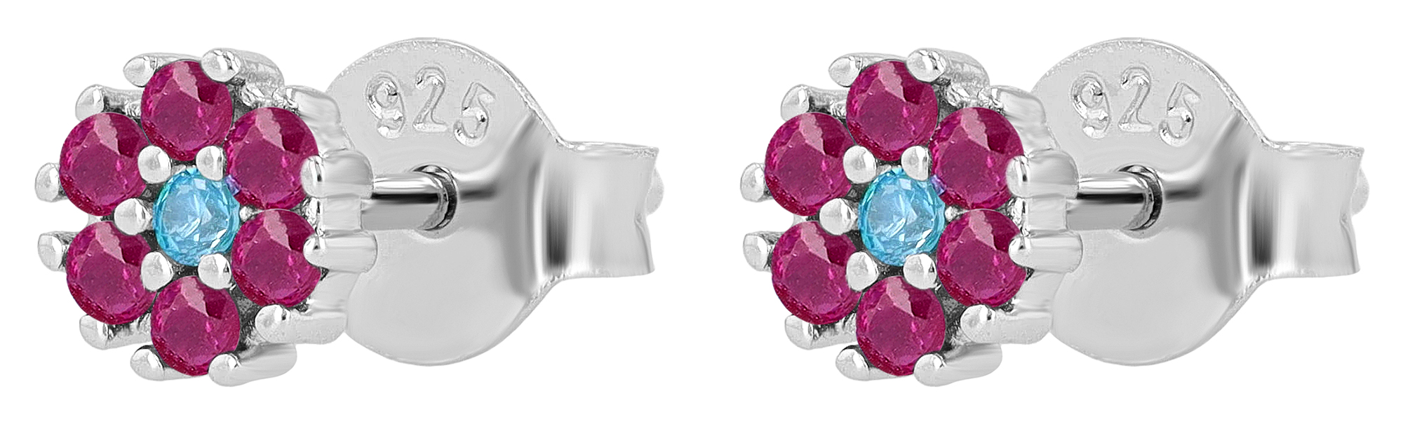 Productinformatie ""Sabi" 925/- Echt Silber Ohrstecker, Zirkonia pink, rhodiniert, Blume"