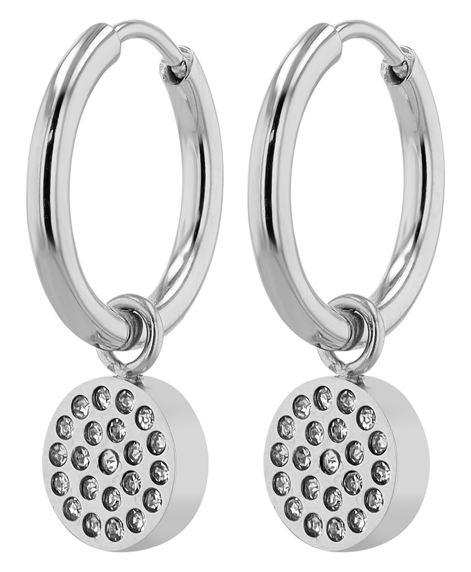 Productinformatie ""Sadie" Edelstahl Creole mit rundem Anhänger mit Steinchen, silberfarben"