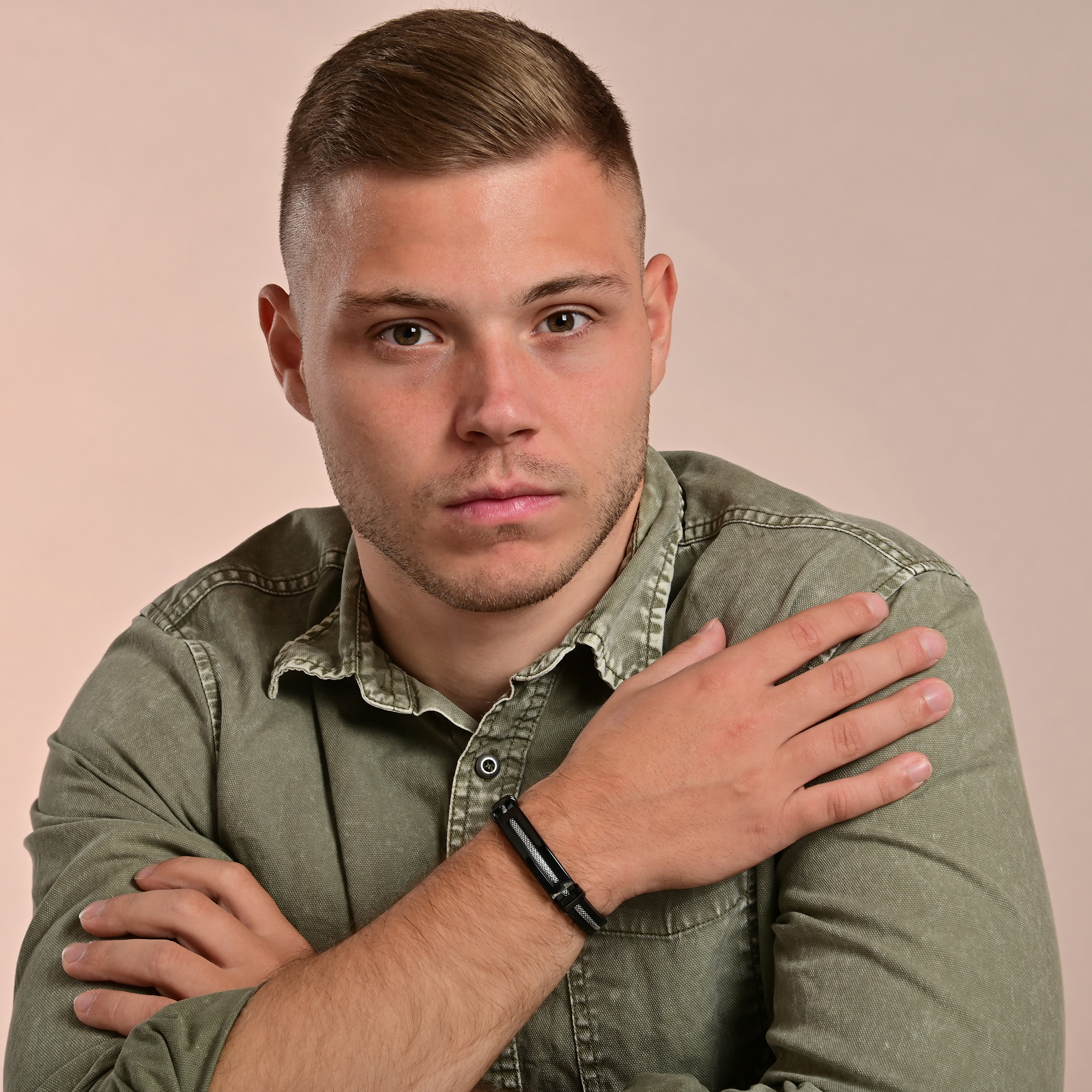 De zwarte Akzent armband is gemaakt van siliconen en is bezaaid met zwarte roestvrijstalen elementen. Er is een inkeping in het midden van de band, die is opgevuld met een 3 mm brede zilverkleurige Milanese ketting. Er is ook een roestvrijstalen plaat in het midden die kan worden aangepast met kleine gravures op de rand. De armband kan gemakkelijk worden geopend en gesloten met een zilverkleurige roestvrijstalen haaksluiting. De afmetingen zijn 21 cm lang, 12 mm breed en 5 mm dik.