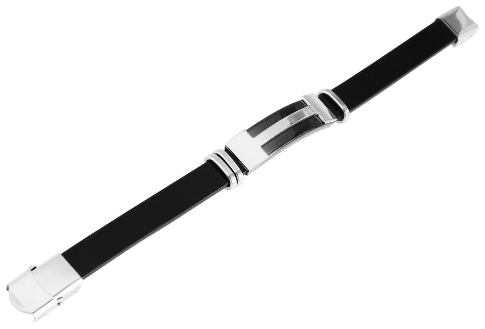 De echt lederen armband van het merk Akzent is gemaakt van een 12 mm brede band van echt leer en heeft een zilverkleurig roestvrijstalen element in het midden, dat aan de zijkanten zwart is afgezet. De moderne sieradenarmband kan worden geopend en gesloten met een zilverkleurige haaksluiting, die ook van roestvrij staal is gemaakt.