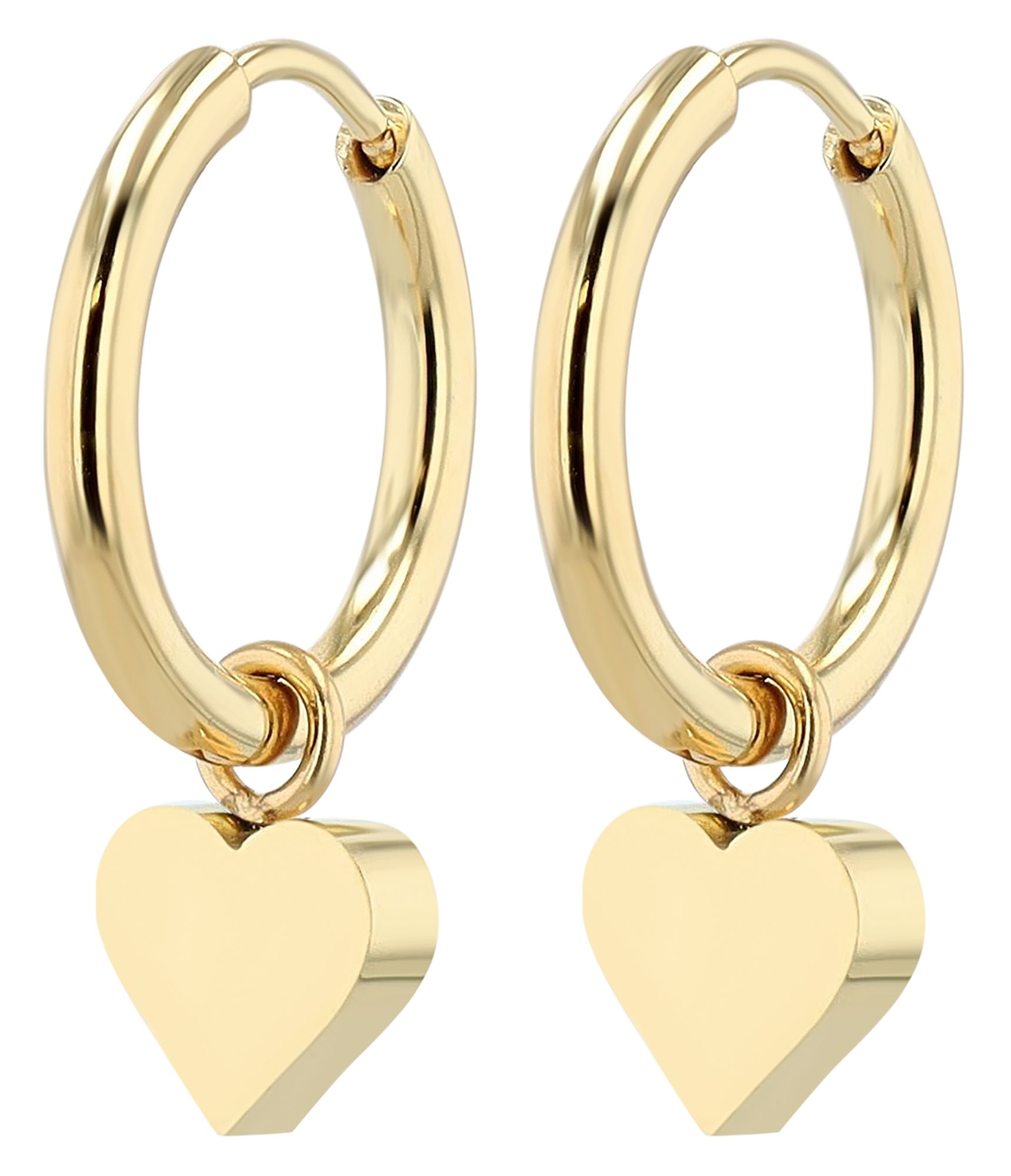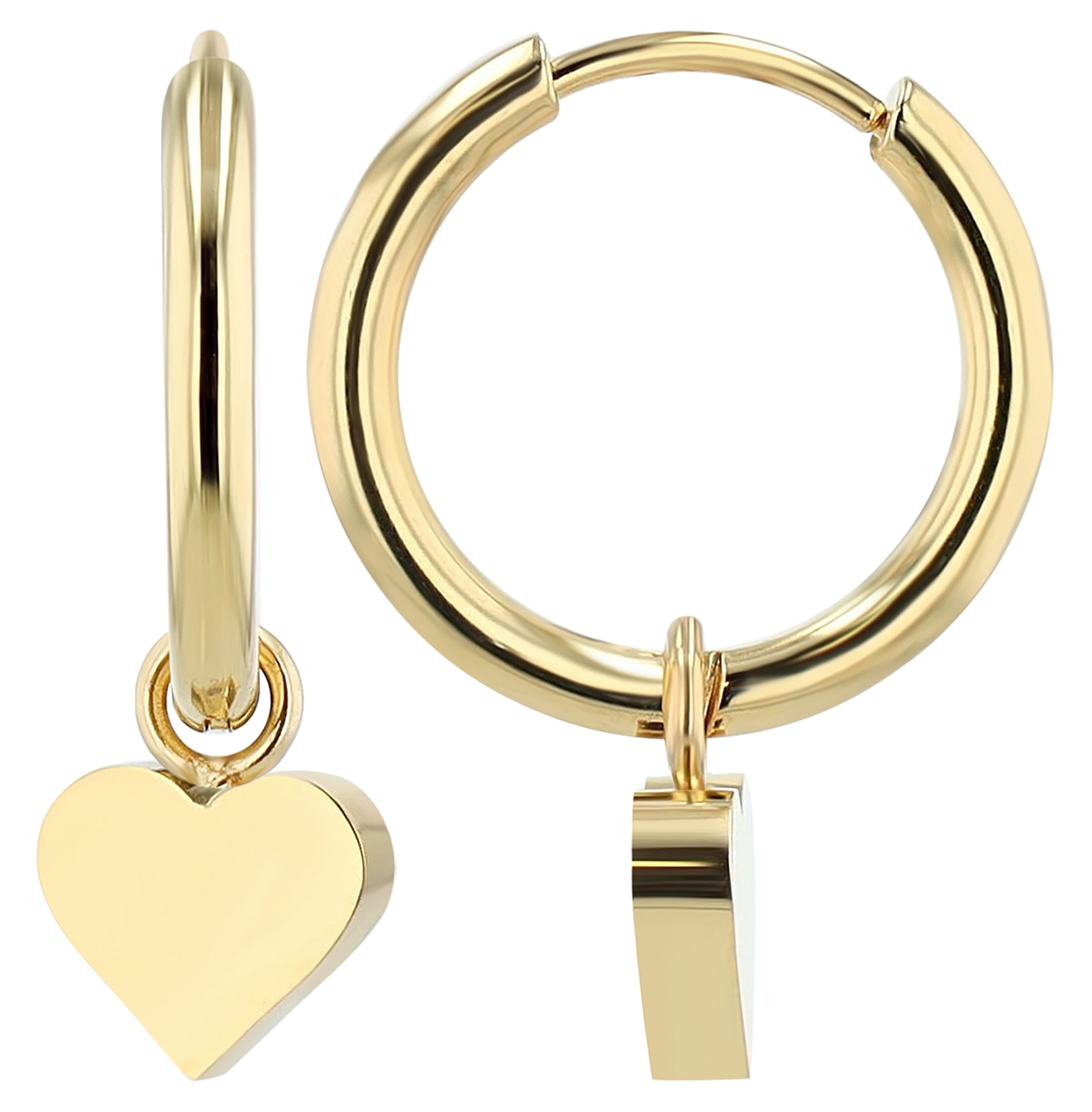 Productinformatie ""Samira" roestvrijstalen oorbellen met hartjeshanger (afneembaar), goudkleurig"