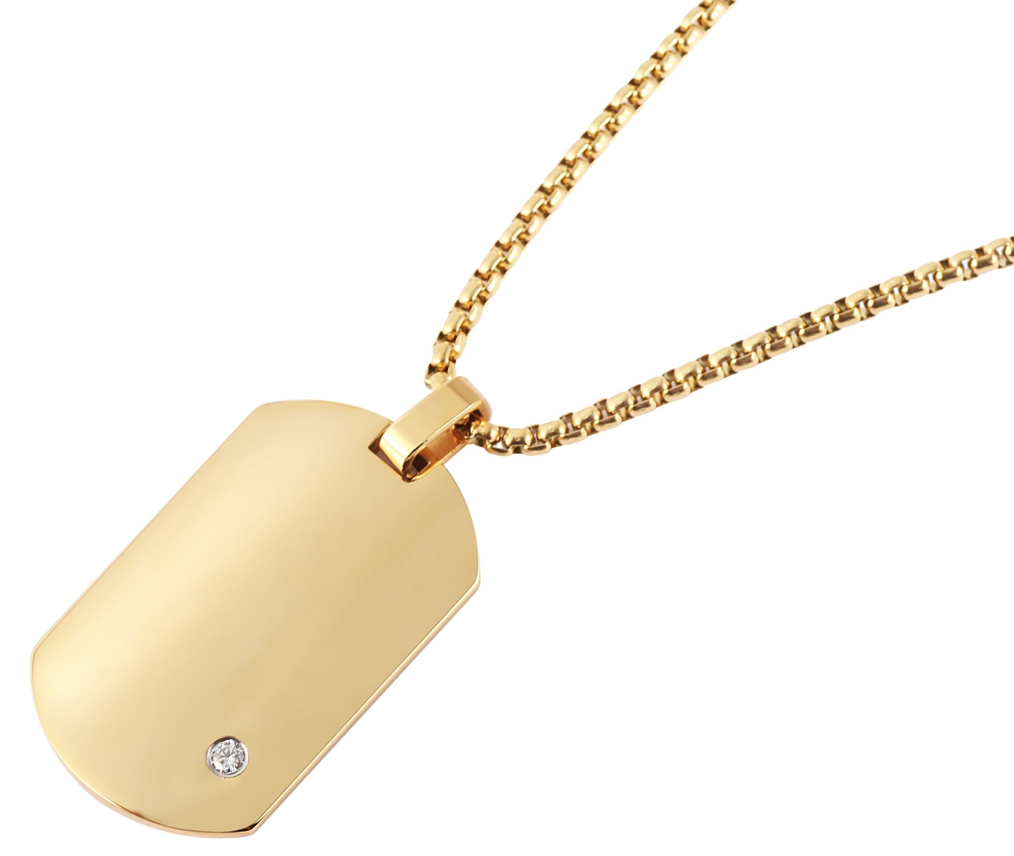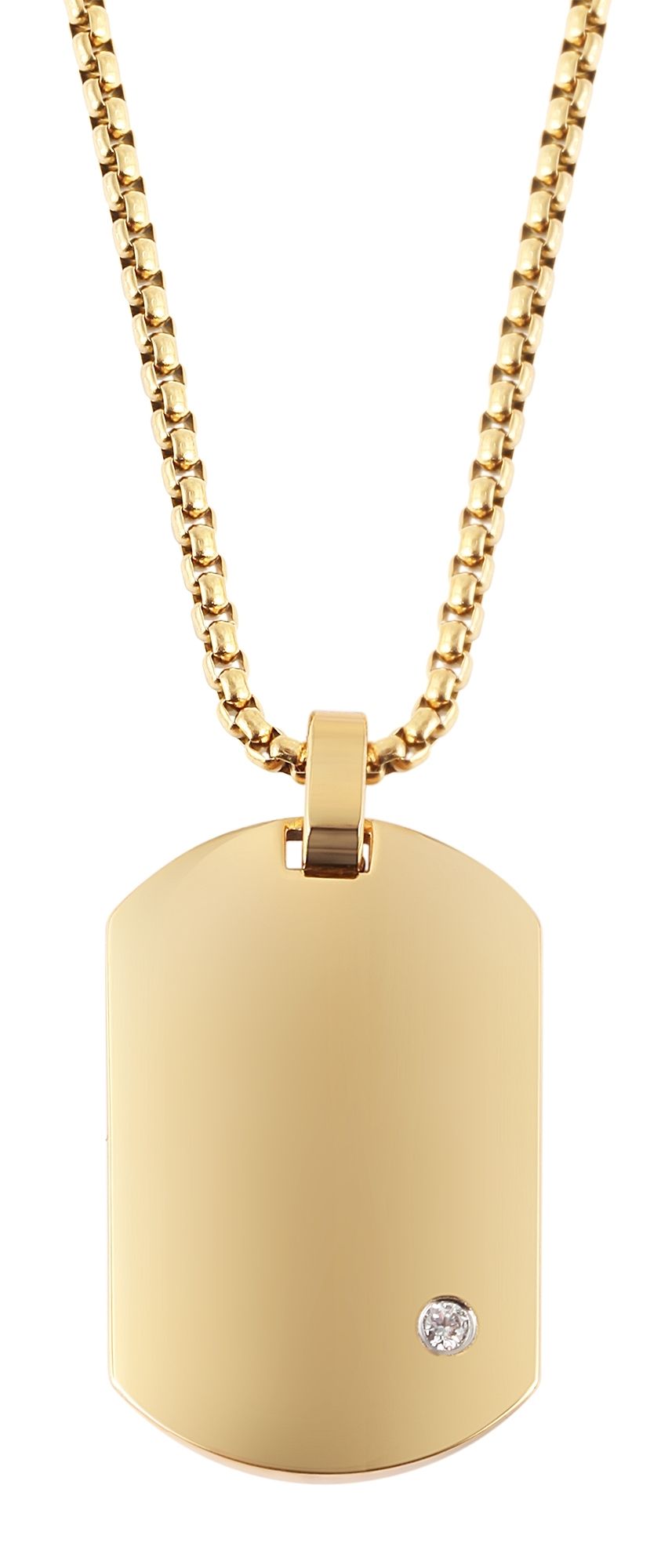 Productinformatie ""Saranja", Edelstahl Halskette, Simili, Dog Tag, goldfarben, gravurfähig, 61 cm"