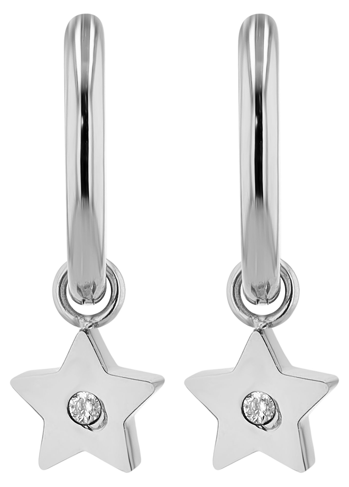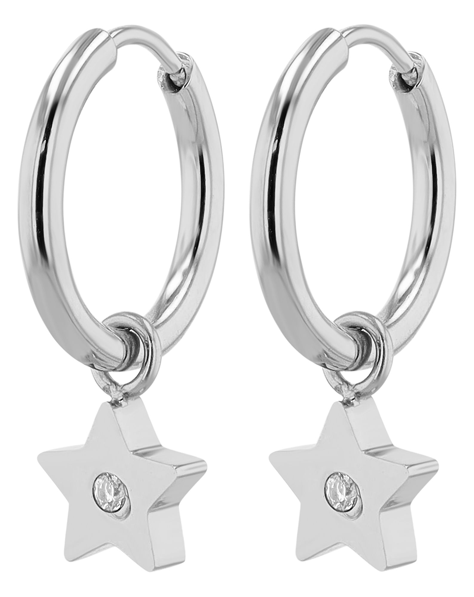 Productinformatie ""Sari" roestvrijstalen hoepel oorbellen met ster hanger, zilverkleurig"