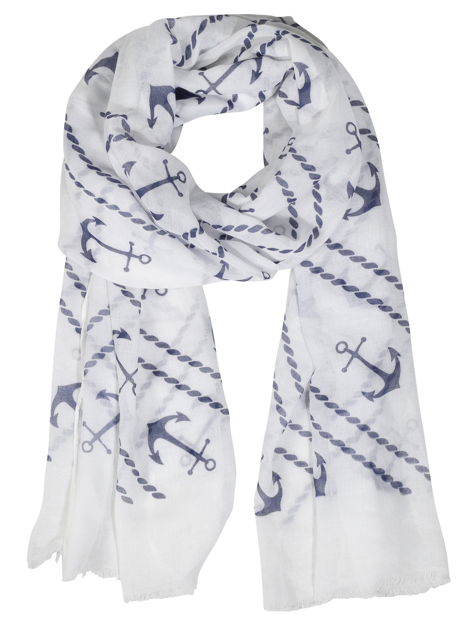 Schalpaket, 70 x 180 cm, 30% Baumwolle 70% Viskose, VE 4, weiß/ blau + Anker