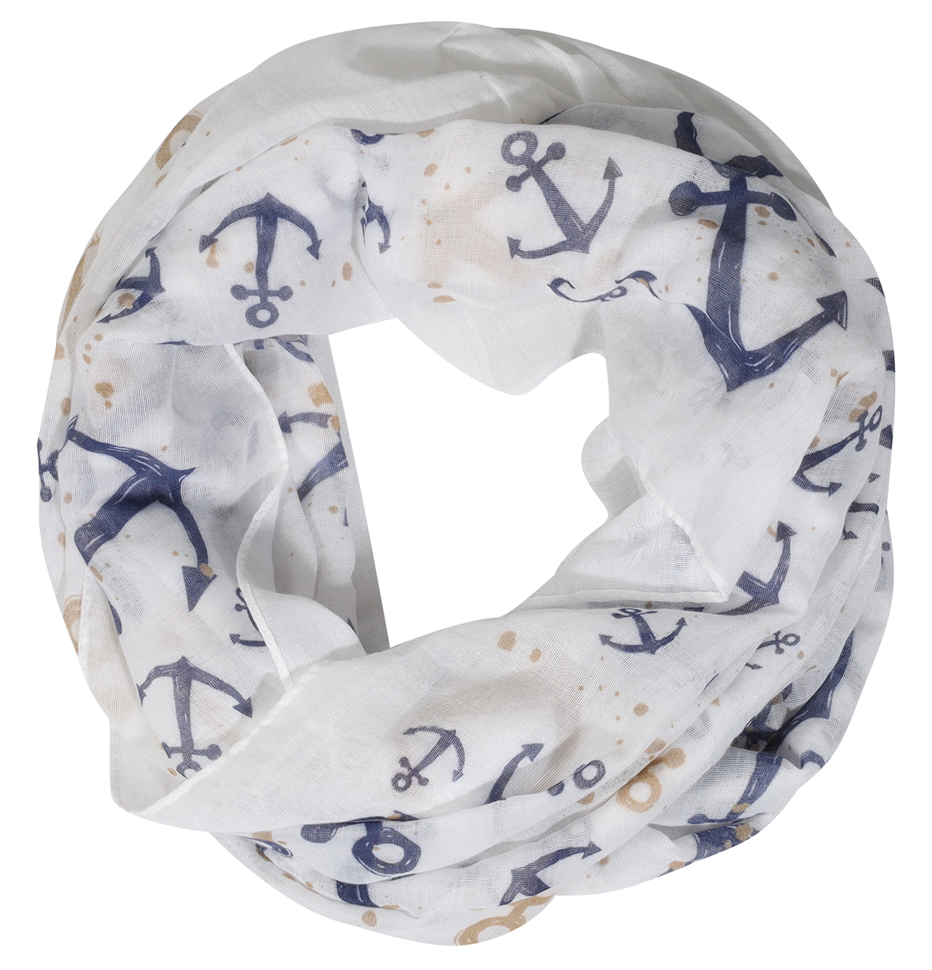 Schalpaket/ Loops, 70 x 180 cm, 30% Baumwolle 70% Viskose, VE 4, weiß + Anker