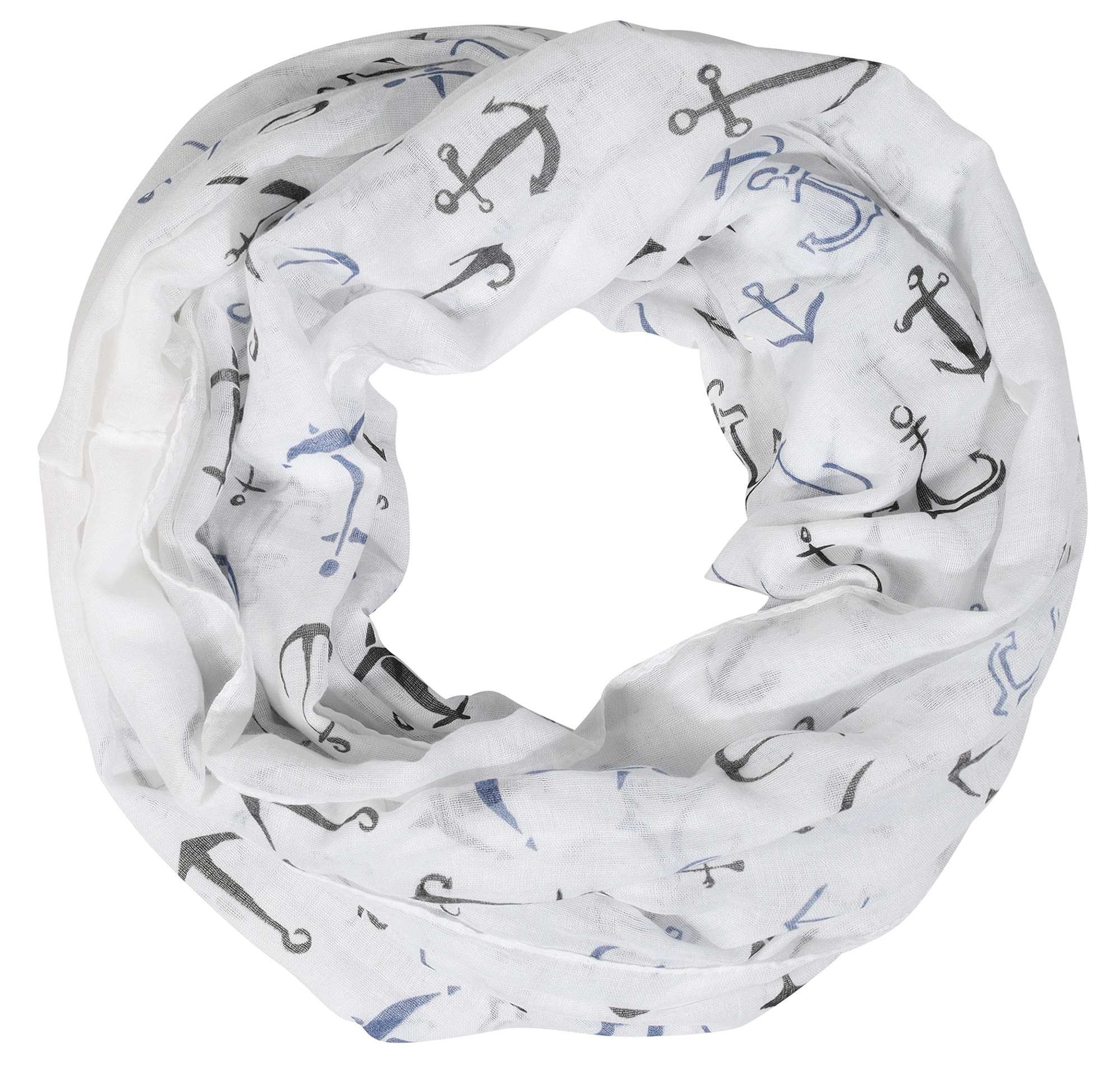Schalpaket/ Loops, 70 x 180 cm, 30% Baumwolle 70% Viskose, VE 4, weiß + Anker