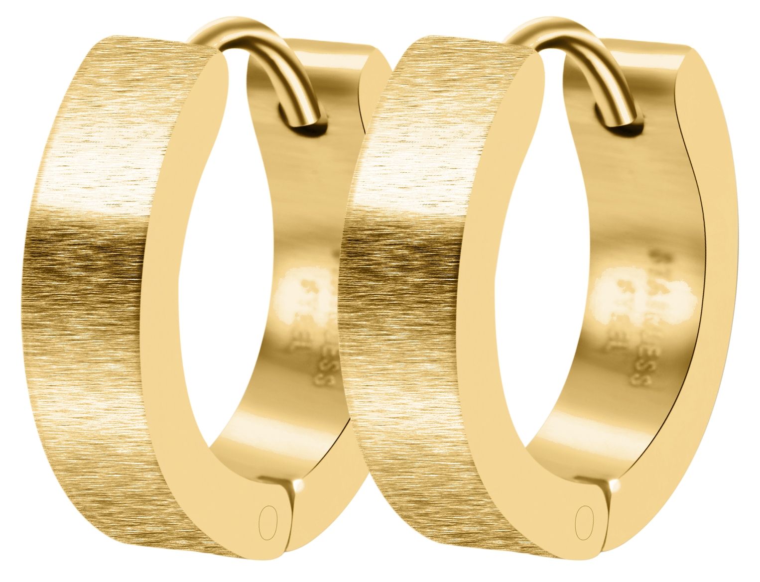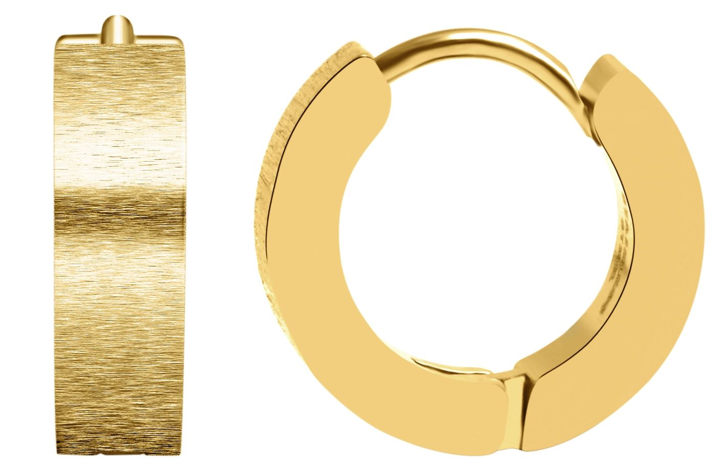 De scharnierende hoepeloorbellen van het merk Akzent zijn gemaakt van roestvrij staal en zijn goudkleurig en geïoniseerd. De oorbellen hebben een matte afwerking. Het materiaal is roestvrij en garandeert een lange levensduur. De oorbellen kunnen eenvoudig in het oorgat worden vastgezet dankzij de eenvoudige roestvrijstalen sluiting. De oorbellen hebben een diameter van 8 mm, zijn 4 mm breed en 2 mm dik.