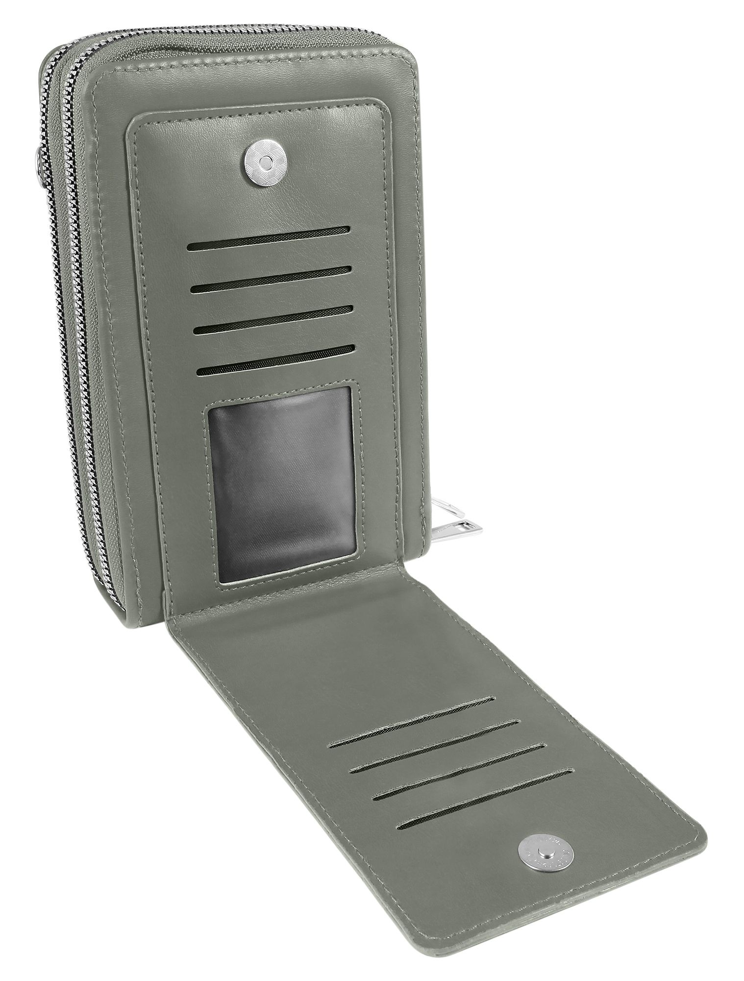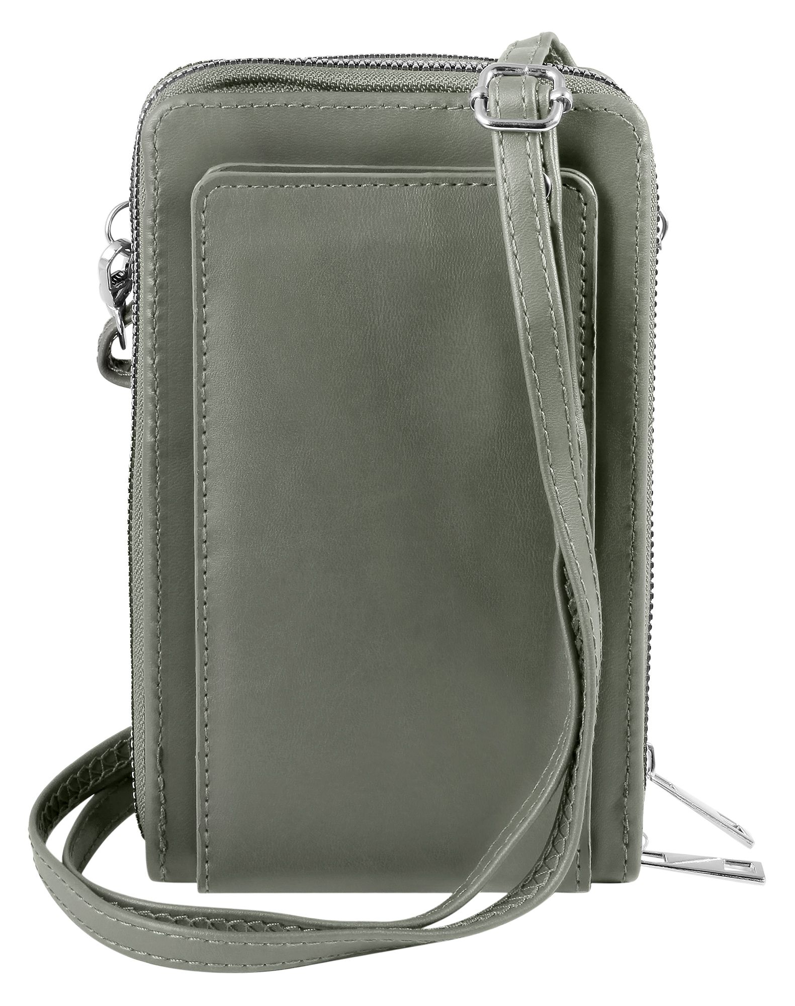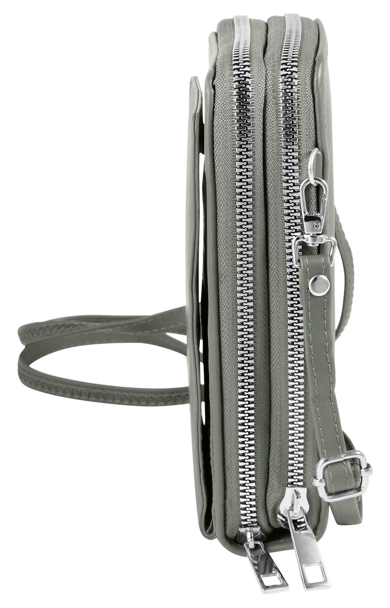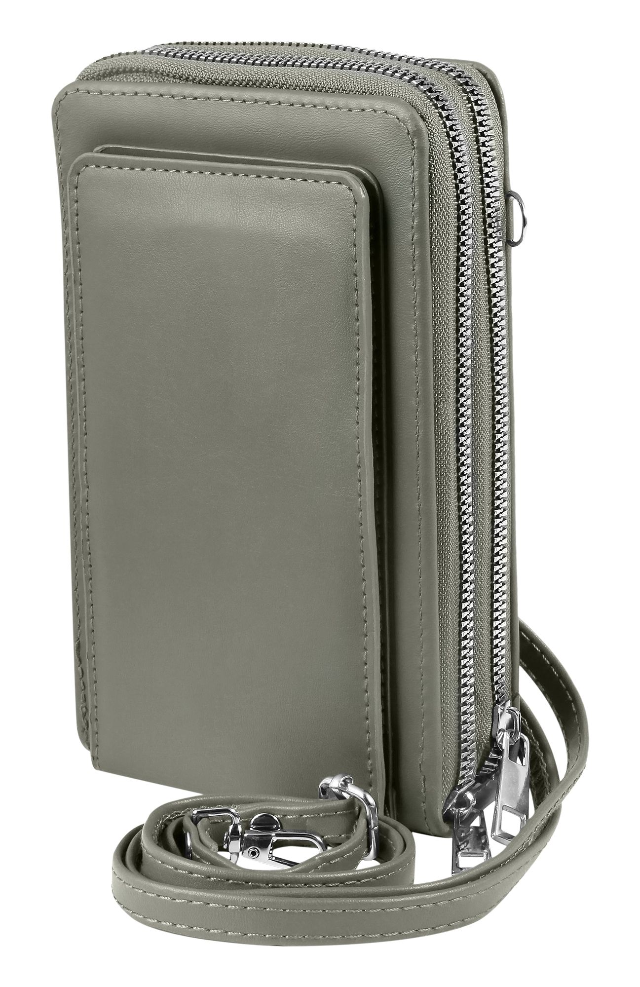 Productinformatie "Schoudertas voor mobiele telefoon van imitatieleer, geschikt voor iPhone 15, lichtgrijs"