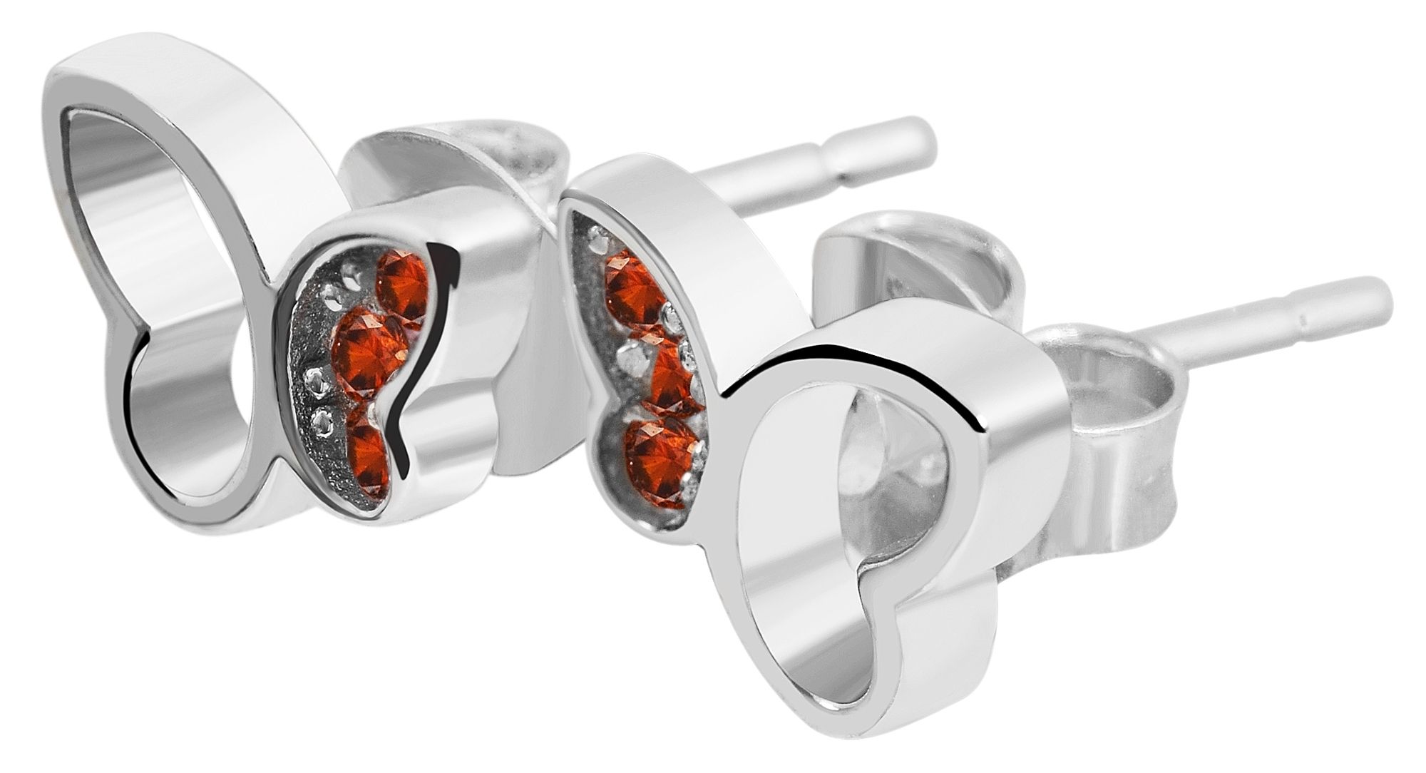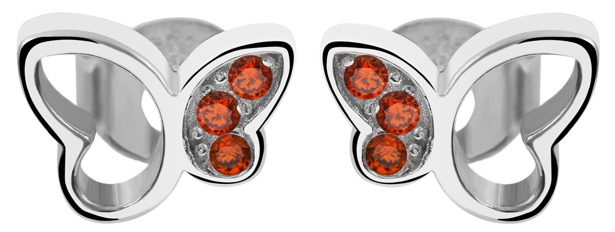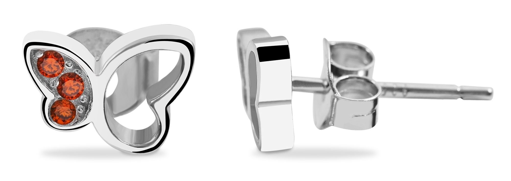 Productinformatie ""Senja" 925/- Echt Silber Ohrstecker, Schmetterling, orangener Zirkoniabesatz, silberfarben rhodiniert"