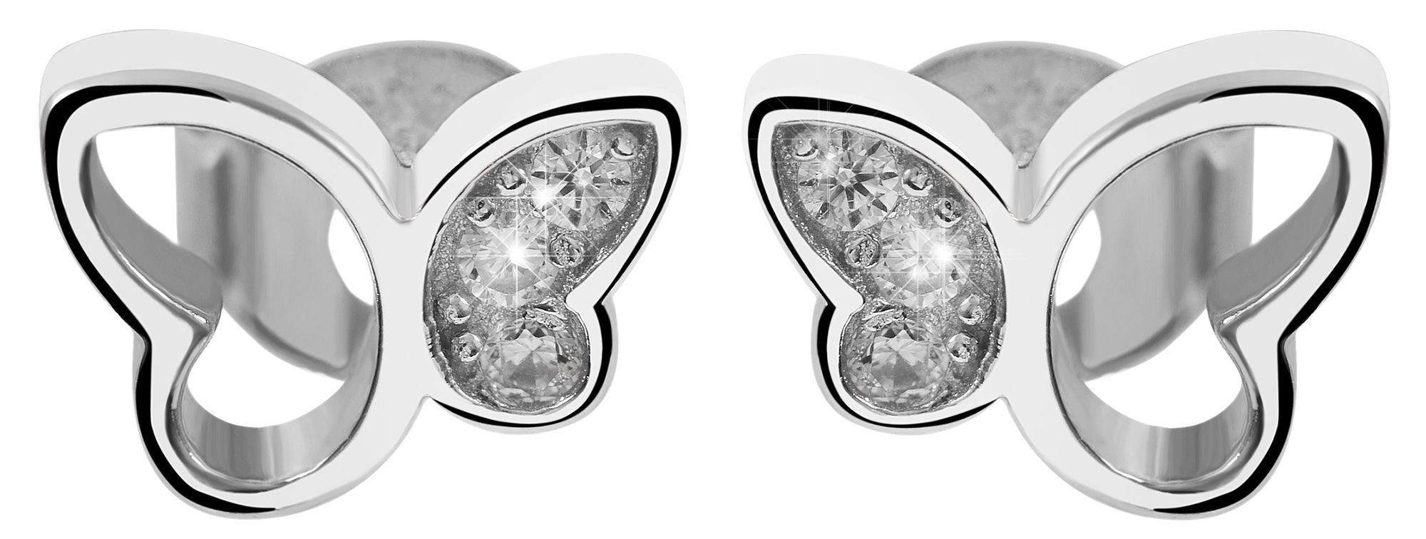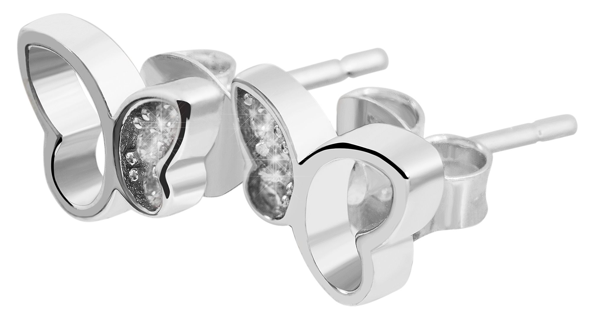 Productinformatie ""Senja" 925/- Echt Silber Ohrstecker, Schmetterling, weißer Zirkoniabesatz, silberfarben rhodiniert"