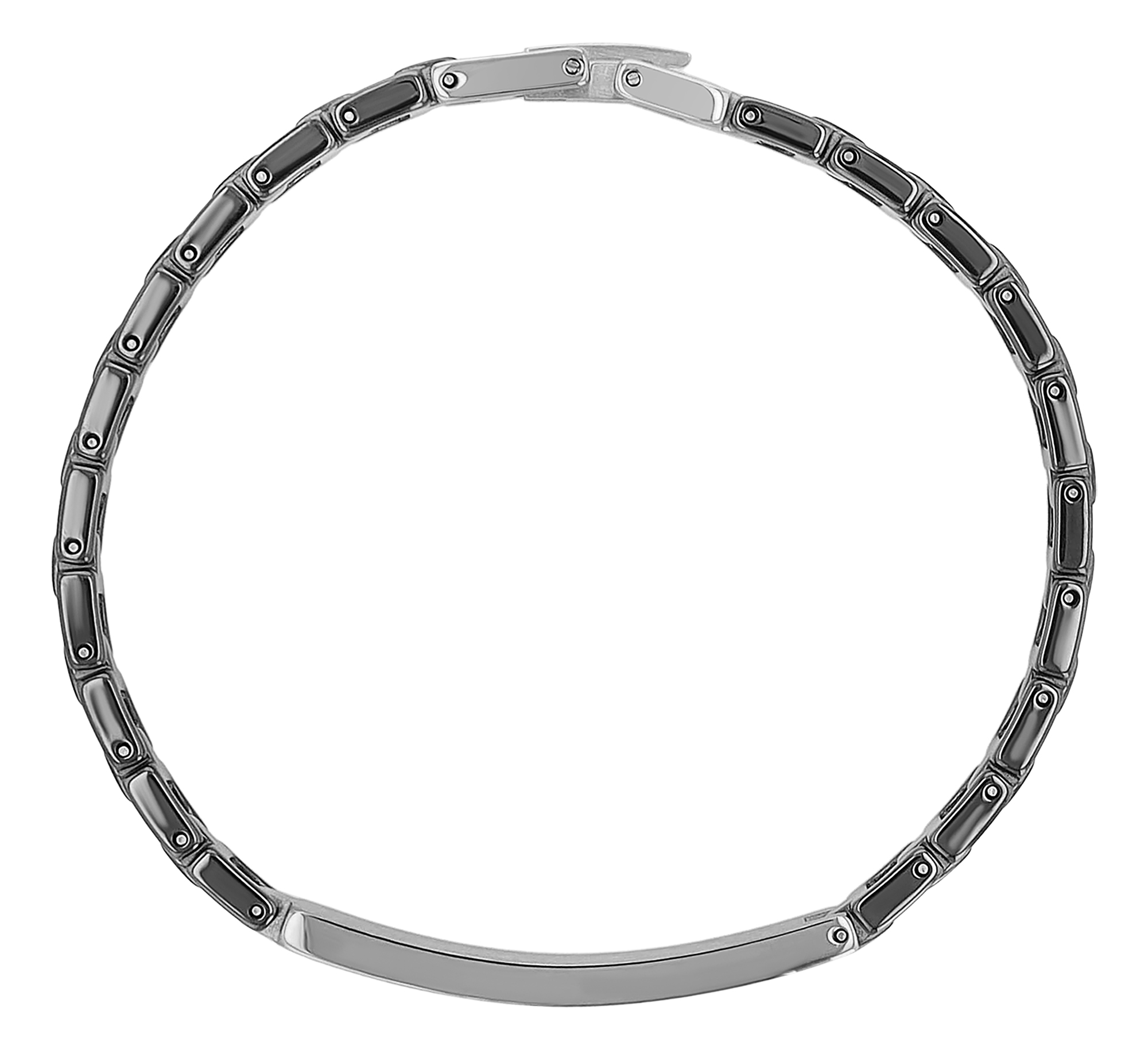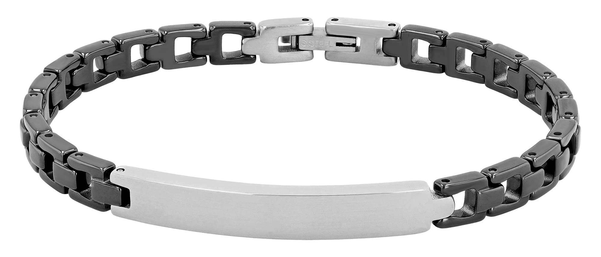 Productinformatie ""Seoa" roestvrijstalen keramische armband, 18cm, graveerplaatje, zwart/zilverkleurig"