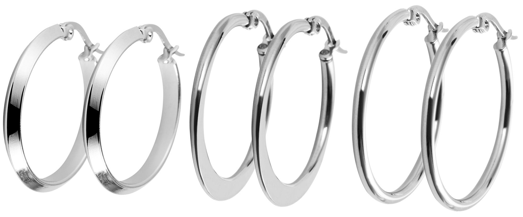 Productinformatie ""Sheila" roestvrijstalen accent hoepel oorbellen, set van 3, zilverkleurig"