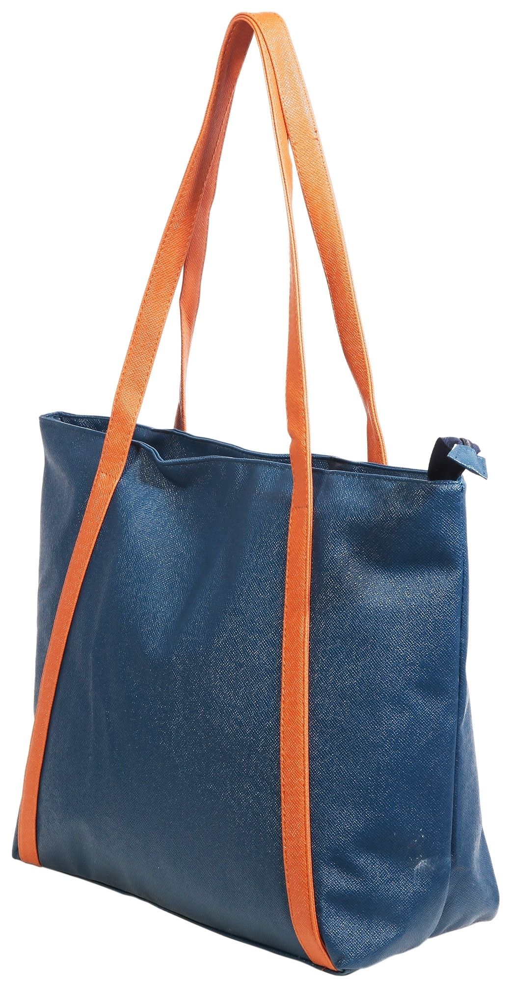 De blauwe dames shopper tas is gemaakt van imitatieleer. De tas heeft twee draaghengsels en een groot hoofdvak dat kan worden geopend met een ritssluiting. Binnenin zit een smal, afsluitbaar binnenvak met een rits achter de rug. De tas is 14 cm lang, 34 cm breed en 31 cm hoog.