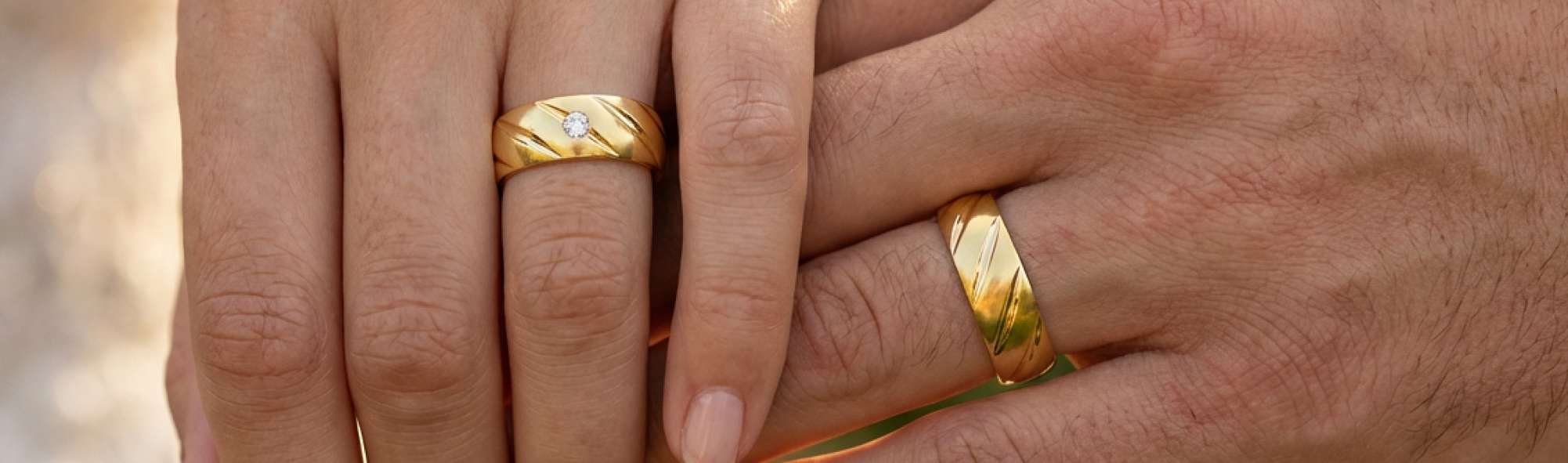 De partnerring voor heren borduurt voort op het ontwerp van de bijpassende damesring door het matte oppervlak te combineren met glanzende randen. Hij is bewust zonder stenen gezet, wat hem een mannelijke maar harmonieuze look geeft. De zorgvuldige afwerking garandeert een comfortabele pasvorm voor dagelijks gebruik.