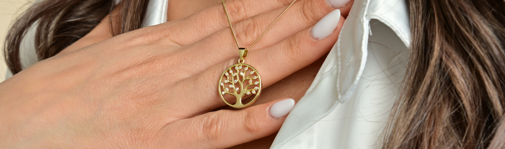 "Andrea" 925/- Echt Silber Anhänger (ohne Kette), Lebensbaum, vergoldet
