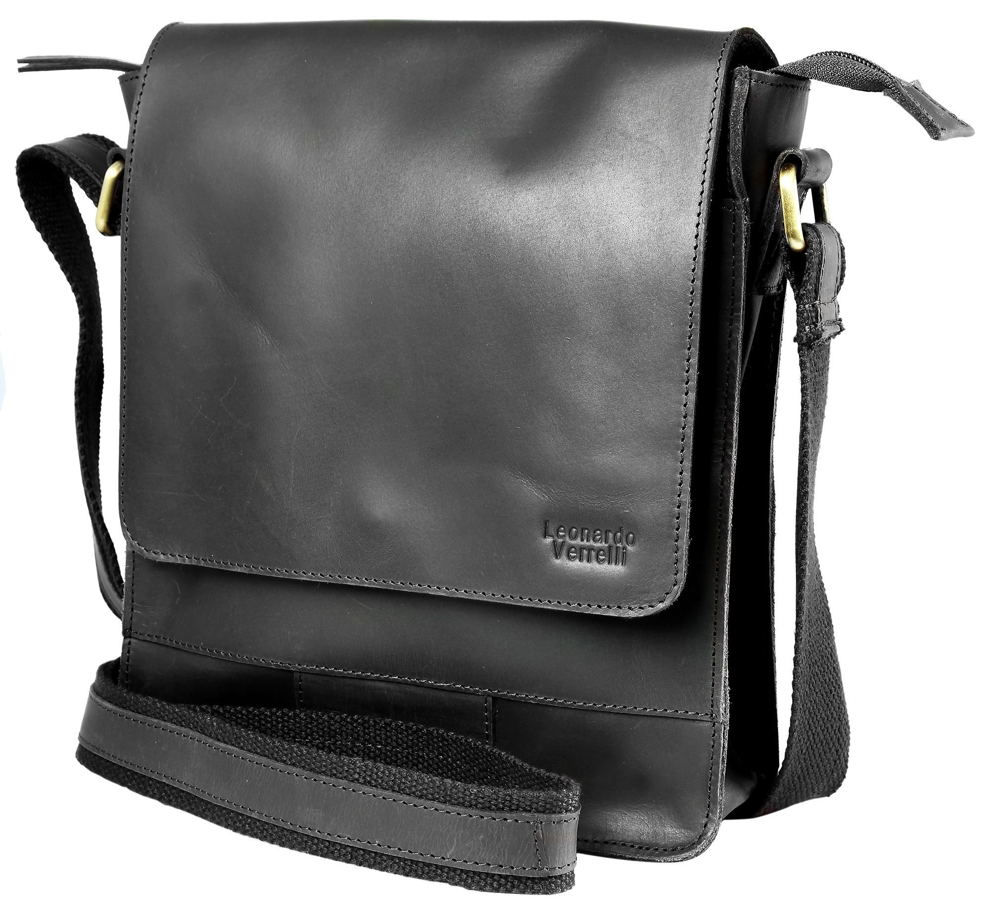 Productinformatie ""Sirin" Leonardo Verrelli echt lederen schoudertas Echt lederen tas, zwart"