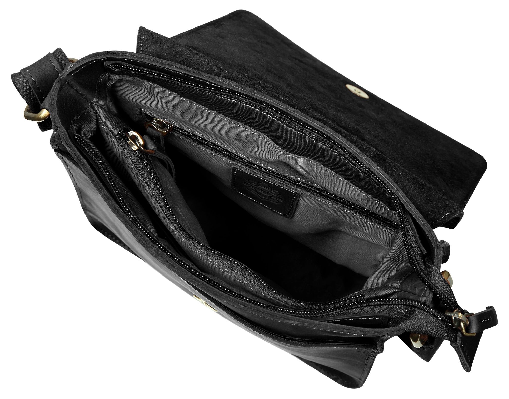 Het hoofdvak kan worden geopend of gesloten met behulp van een rits. De inhoud kan ook worden vastgezet met behulp van de flap met drukknoop. Binnenin is er een gsm-vak en twee ritsvakken. De twee vakken aan de voor- en achterkant bieden nog meer opbergmogelijkheden. Deze stijlvolle tas is een tijdloze allrounder die bij veel gelegenheden gedragen kan worden.