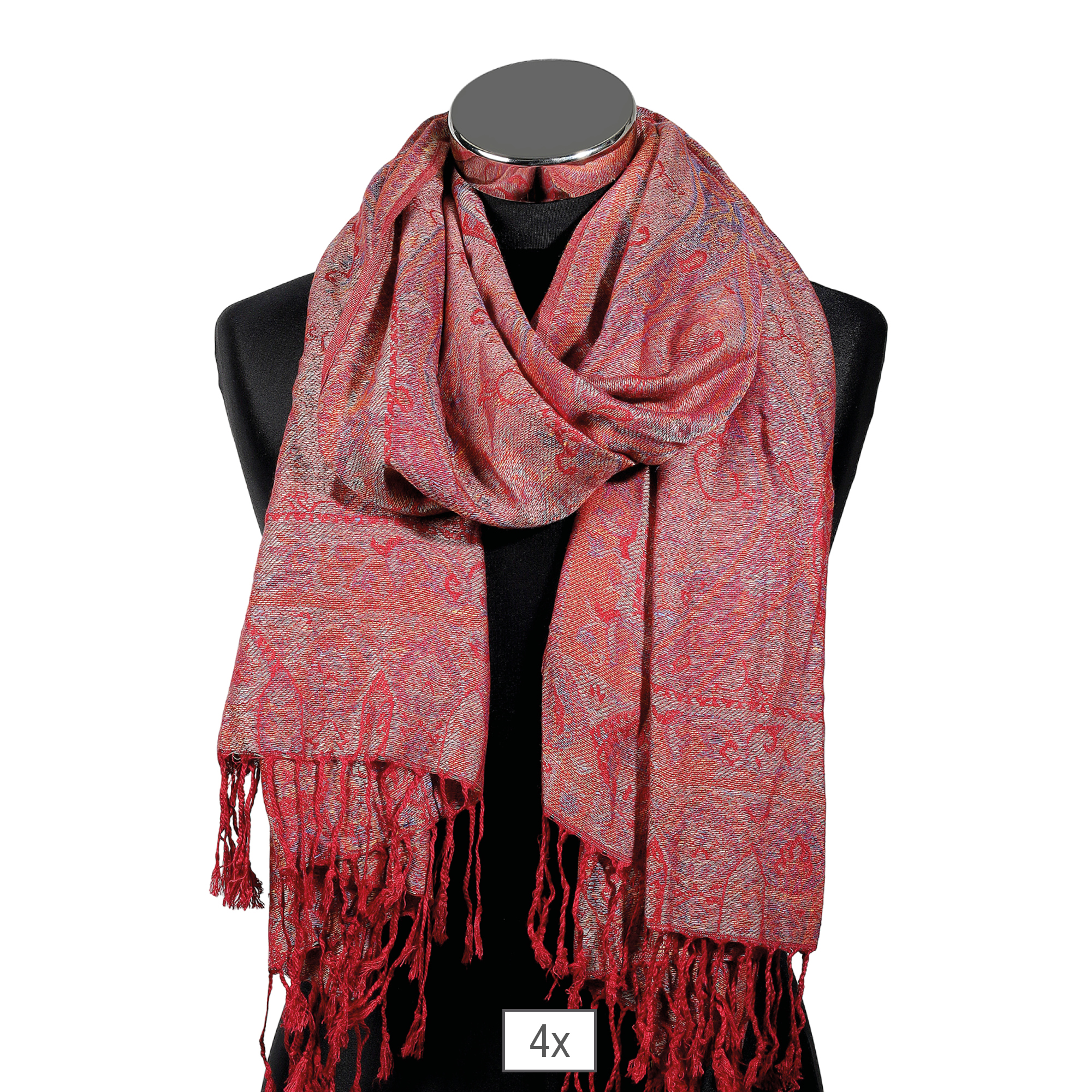 Productinformatie "Sjaalpakket, 100% viscose, PU 4, paisleymotief - rood"
