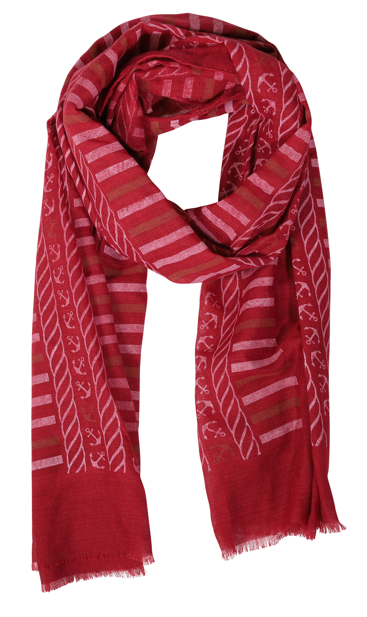 Sjaalpakket, 70 x 180 cm, 30% katoen 70% viscose, PU 4, rood/beige + anker