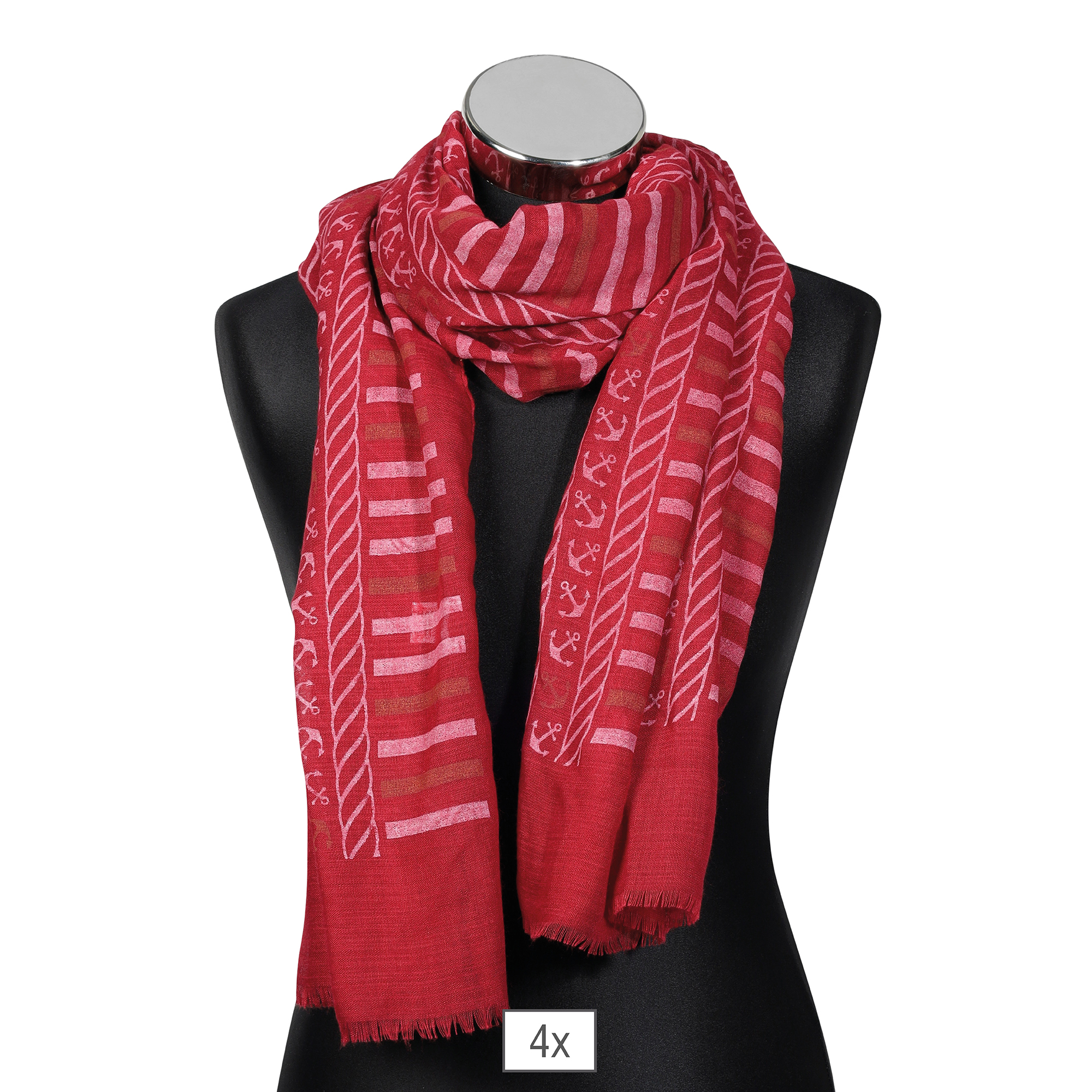 Productinformatie "Sjaalpakket, 70 x 180 cm, 30% katoen 70% viscose, PU 4, rood/beige + anker"