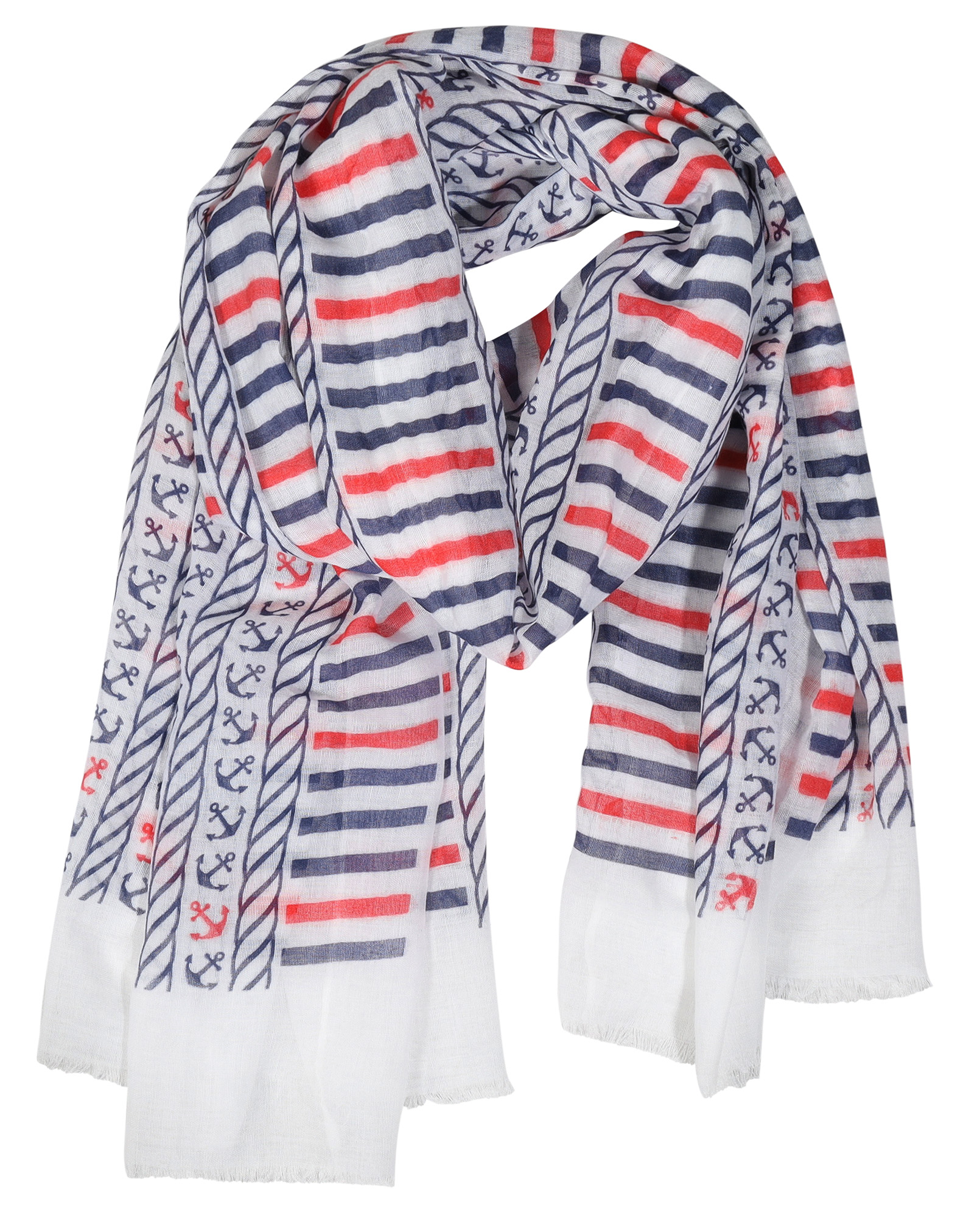 Sjaalpakket, 70 x 180 cm, 30% katoen 70% viscose, PU 4, wit/blauw/rood + anker