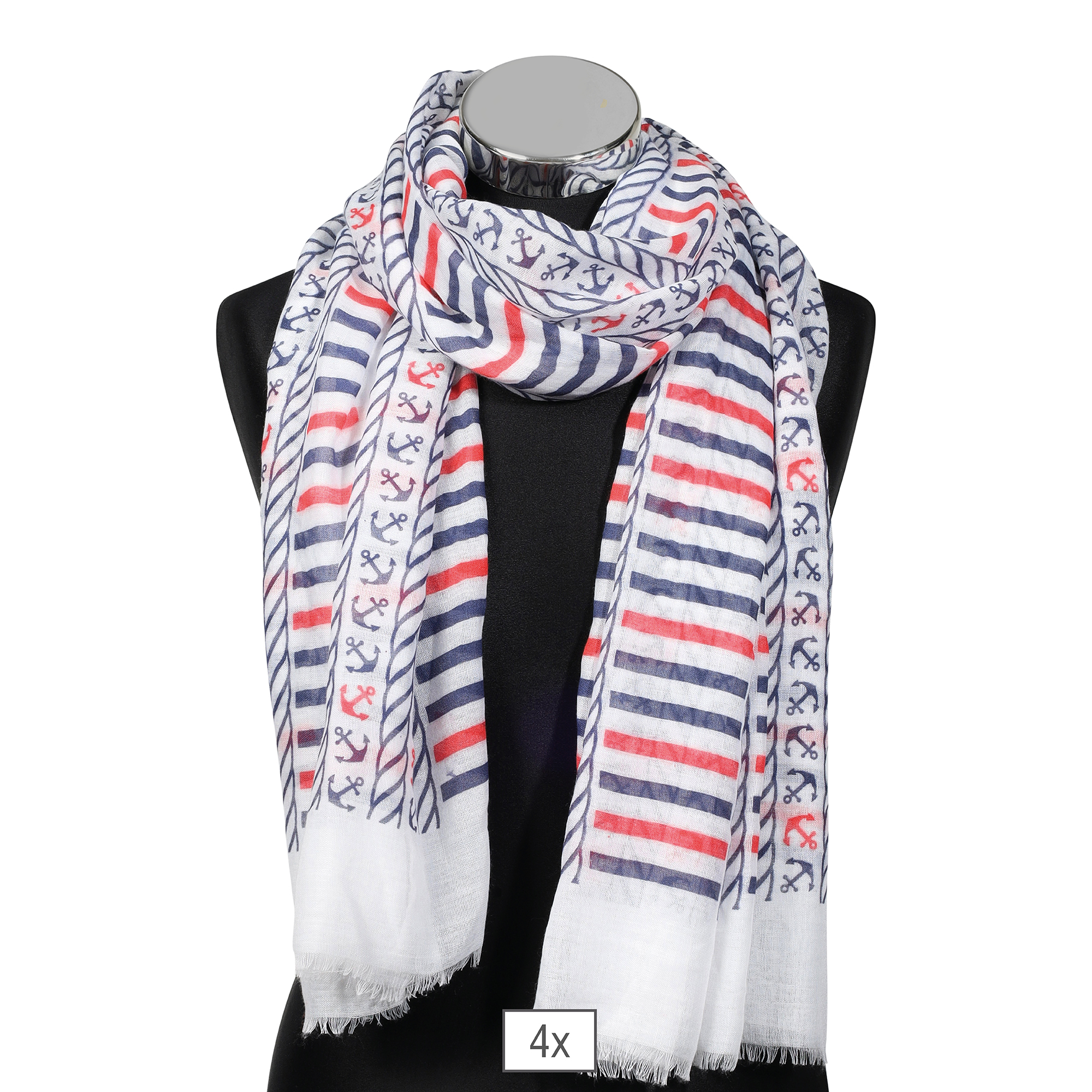 Productinformatie "Sjaalpakket, 70 x 180 cm, 30% katoen 70% viscose, PU 4, wit/blauw/rood + anker"
