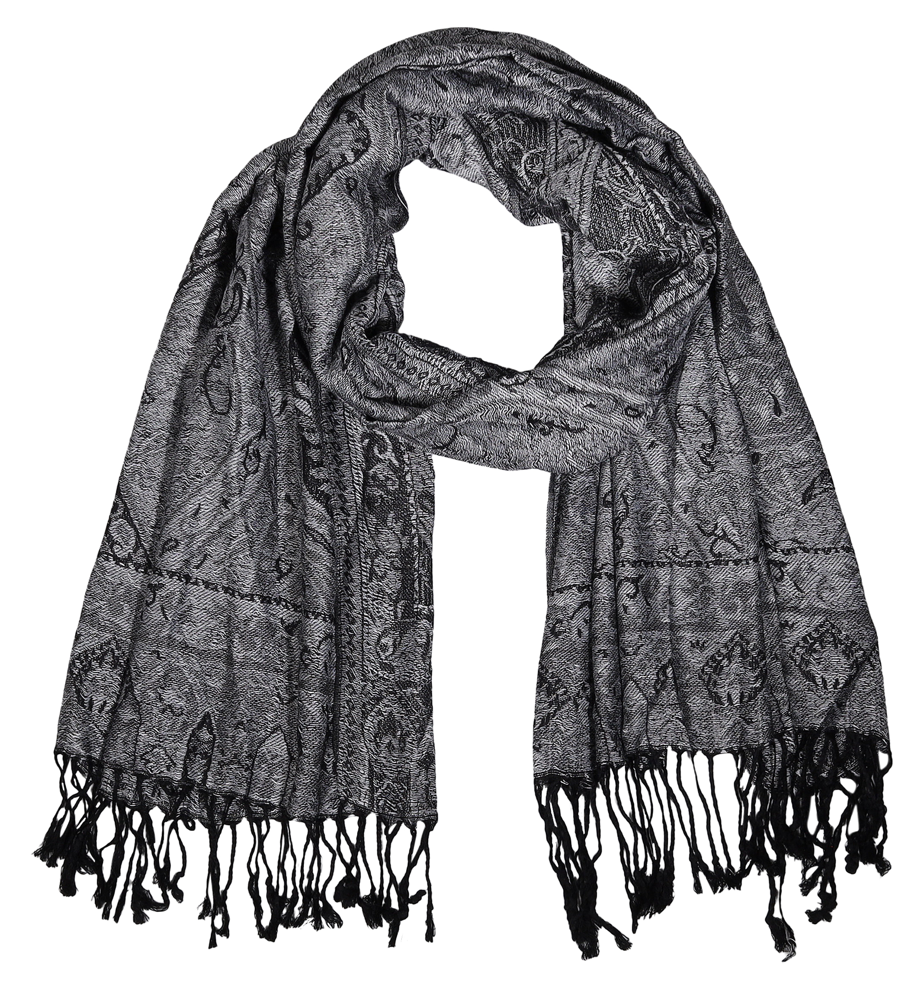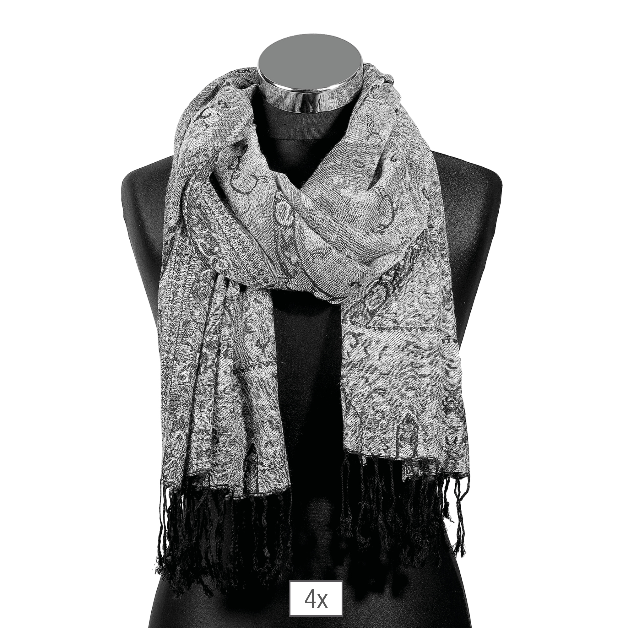 Productinformatie "Sjaalset, 100% viscose, PU 4, paisleymotief - zwart/grijs"