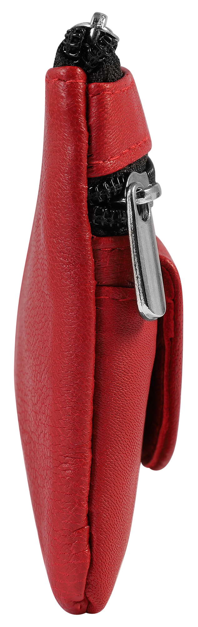 Het rode sleuteletui van het merk Excellanc is gemaakt van echt leer. De binnenvoering is van polyester. Het stiksel op het tasje, dat voor stabiliteit en ondersteuning zorgt, is ook rood. Aan het sleuteletui zijn twee praktische sleutelhangers met een diameter van 25 mm bevestigd. Deze zijn verbonden met de binnenkant van het tasje via twee ca. 2 cm lange leren riempjes. Ze zijn ideaal voor het bevestigen van sleutels of hangers, maar ook voor bevestiging aan tassen of sleutelhangers. Het sleuteletui heeft een groot binnenvak en een ritsvak aan de buitenkant. Onder het ritsvak zit nog een vakje met een drukknoopsluiting. Het etui heeft een lengte van 8 cm, een breedte van 11,8 cm en een dikte van 1 cm. Het sleuteletui is perfect om sleutels in op te bergen. Kleingeld en pasjes kunnen er ook handig in opgeborgen worden. Klein maar met een grote impact, dit klassieke sleuteletui zal zeker indruk maken.