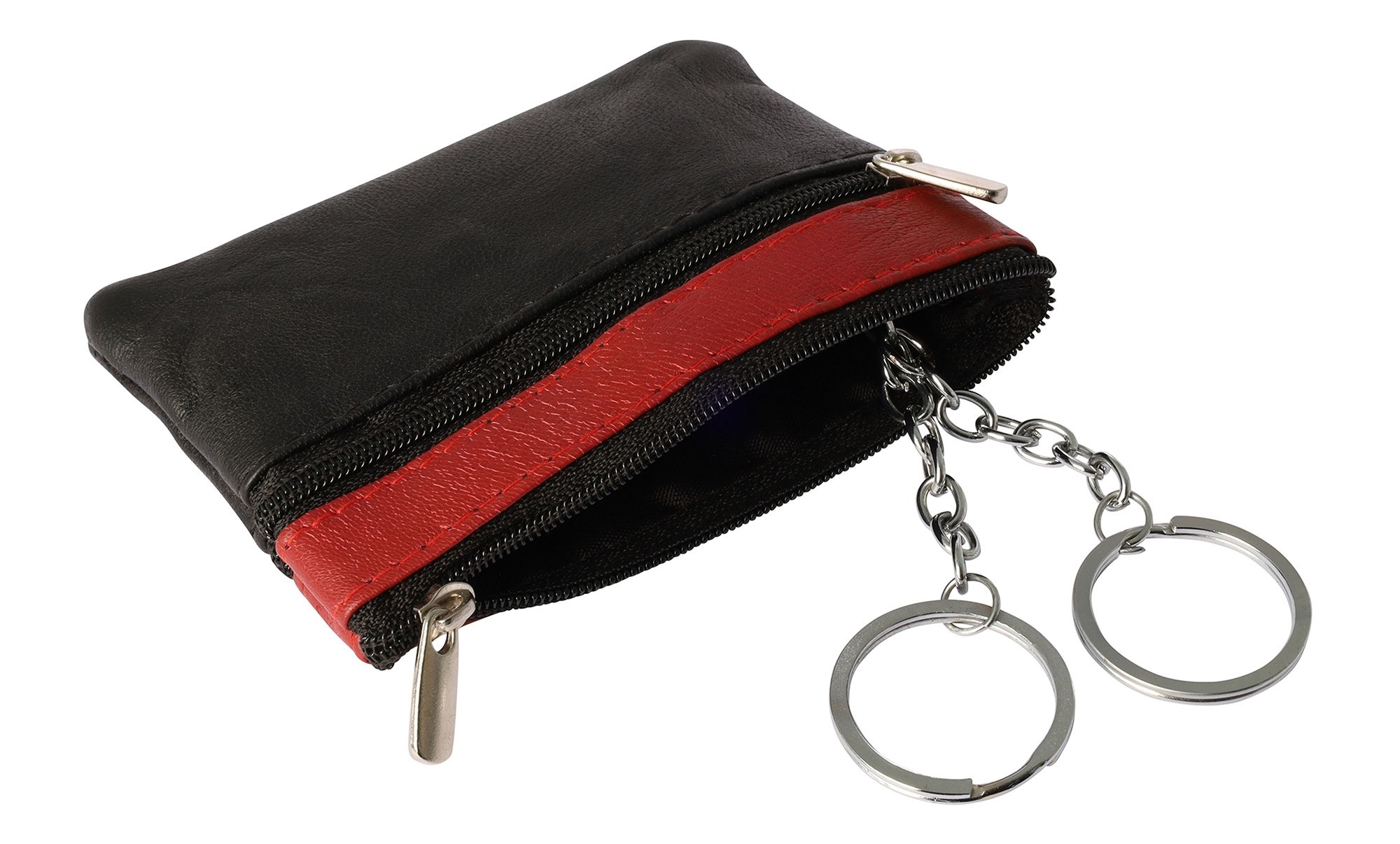 Productinformatie "Sleuteletui van echt leer in zwart/rood"