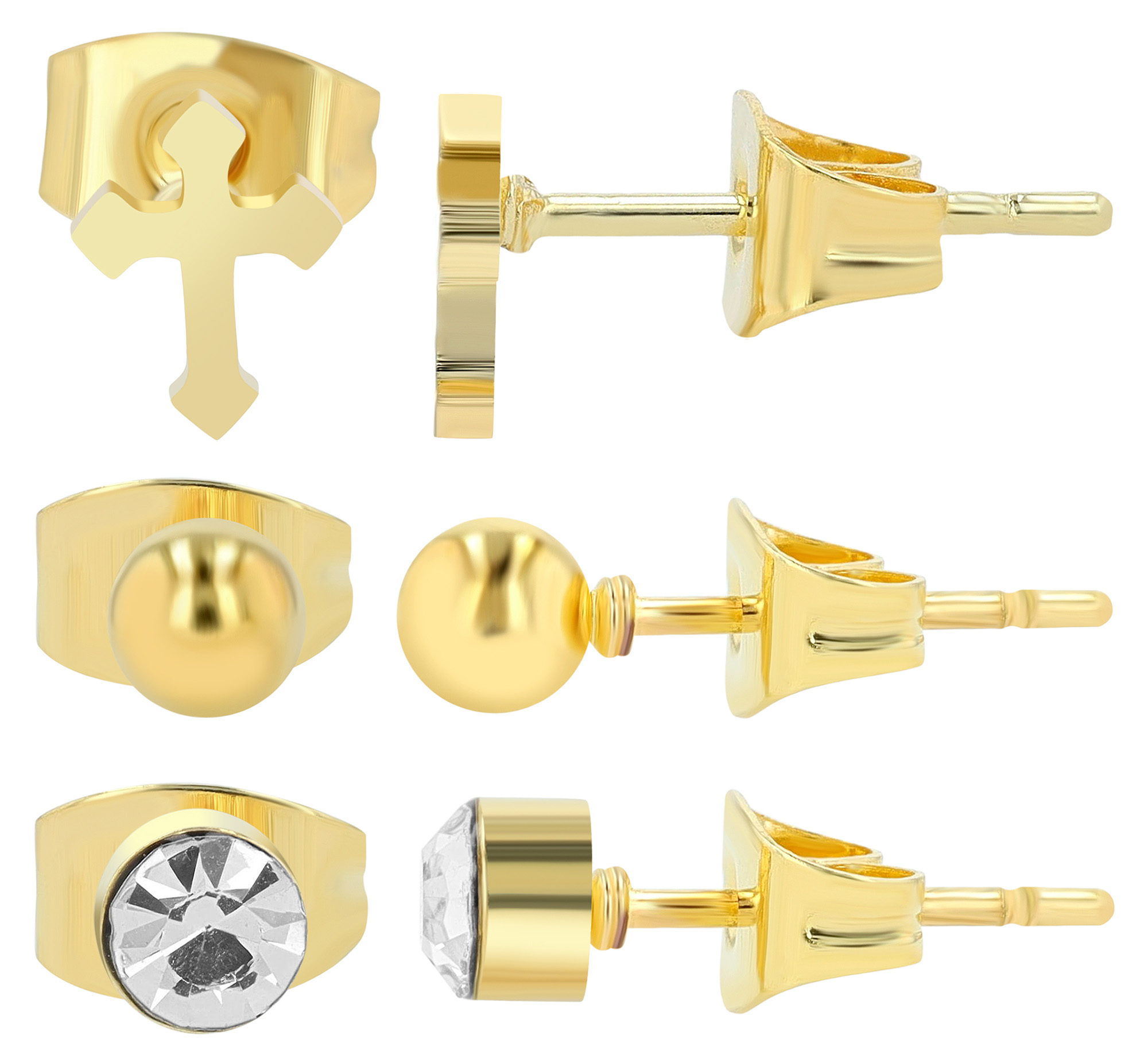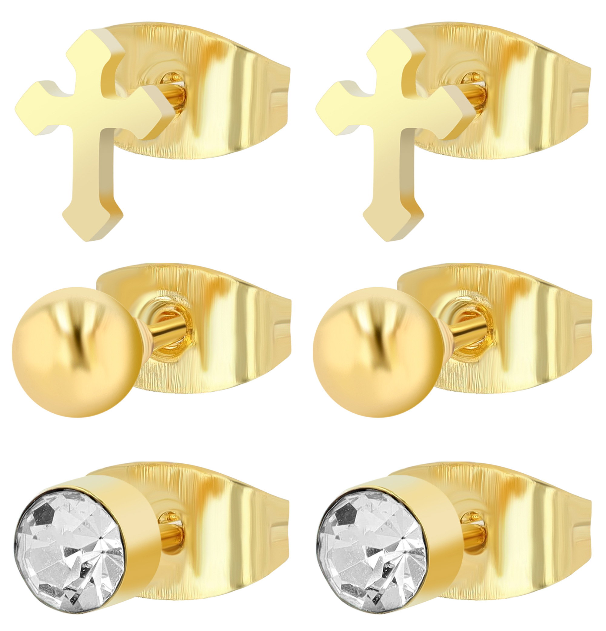 "Soleil", Edelstahl Ohrstecker, 3 Paar, goldfarbig (VE12)