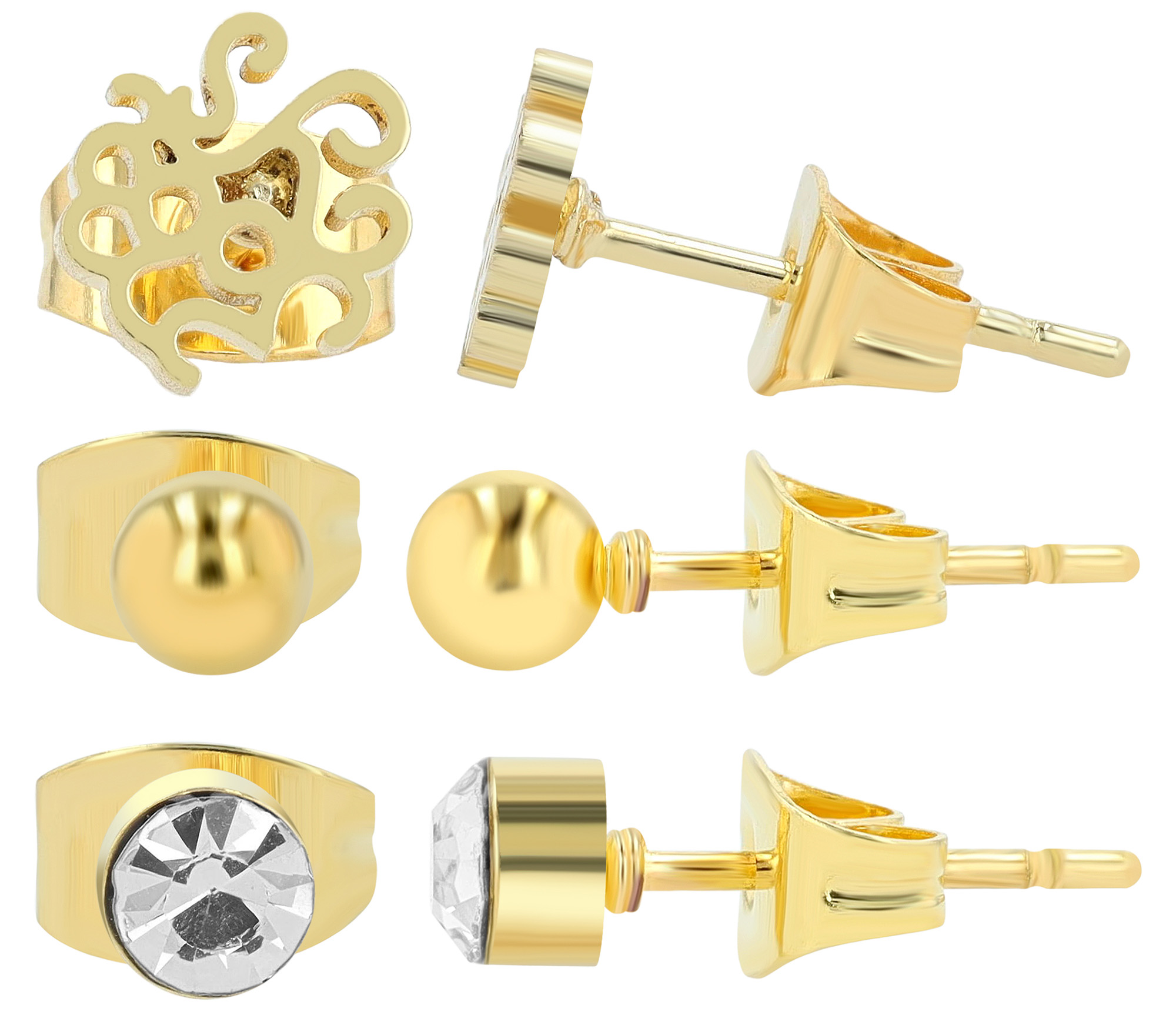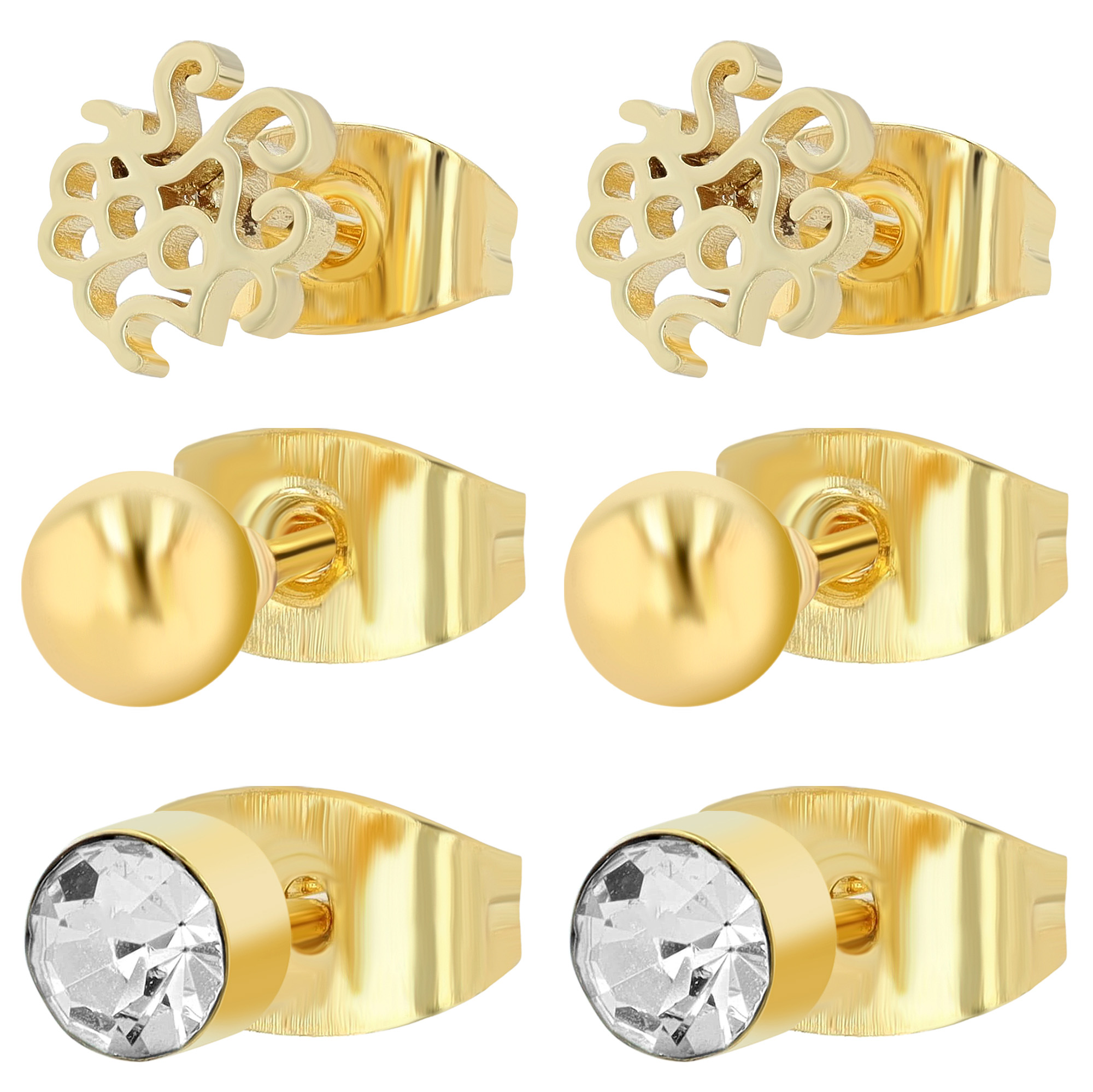 Productinformatie ""Soleil", roestvrijstalen oorstekers, 3 paar, goudkleurig (PU12)"