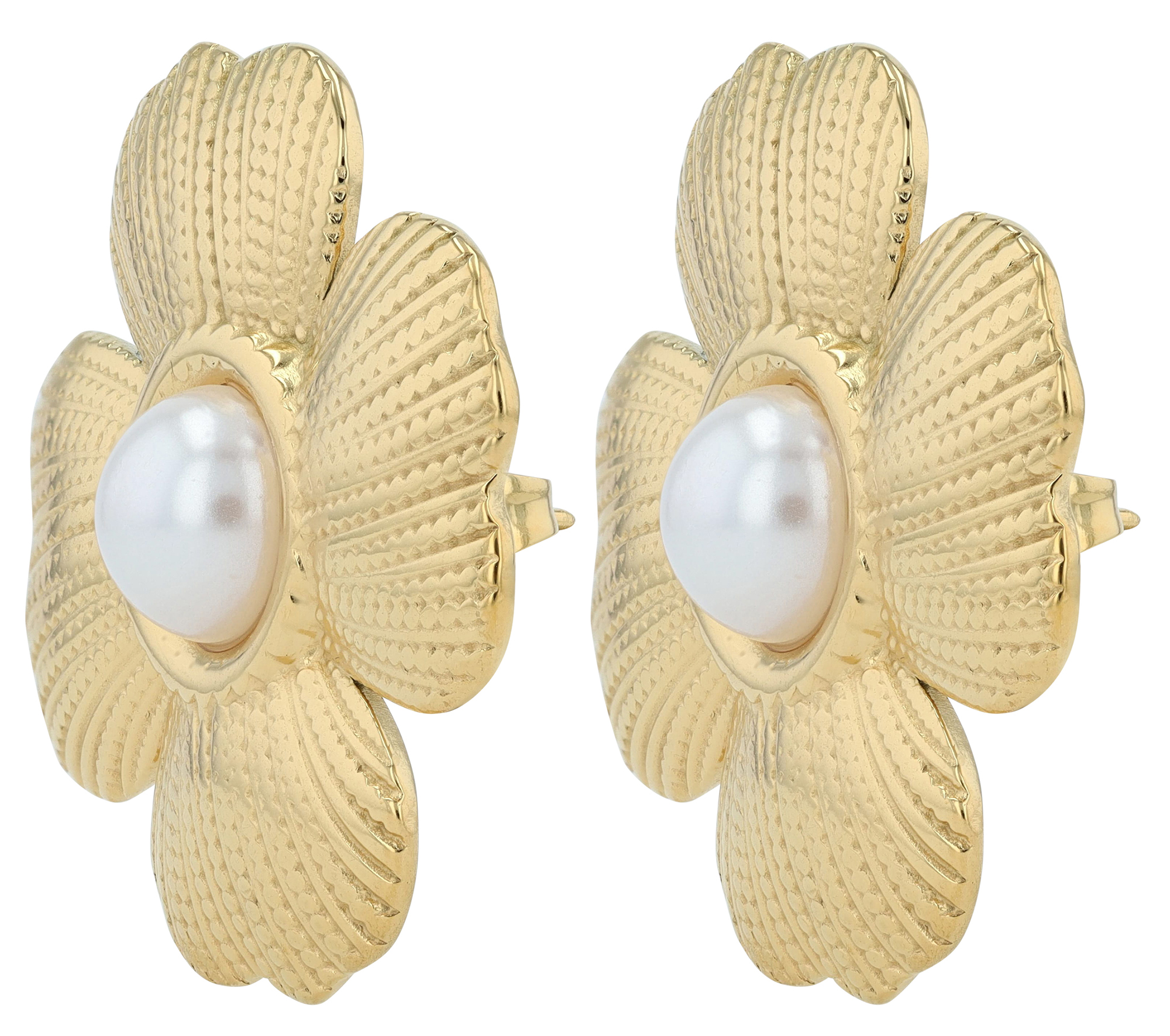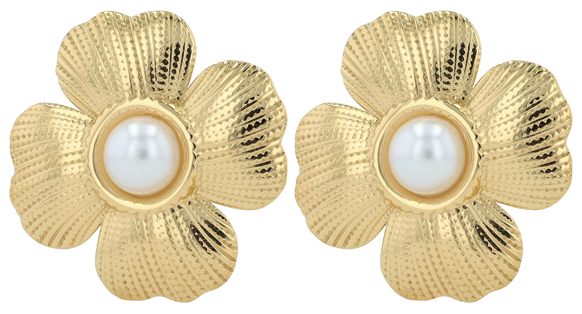 Productinformatie ""Steffi" Edelstahl Ohrstecker, Statement, Blume, goldfarben"