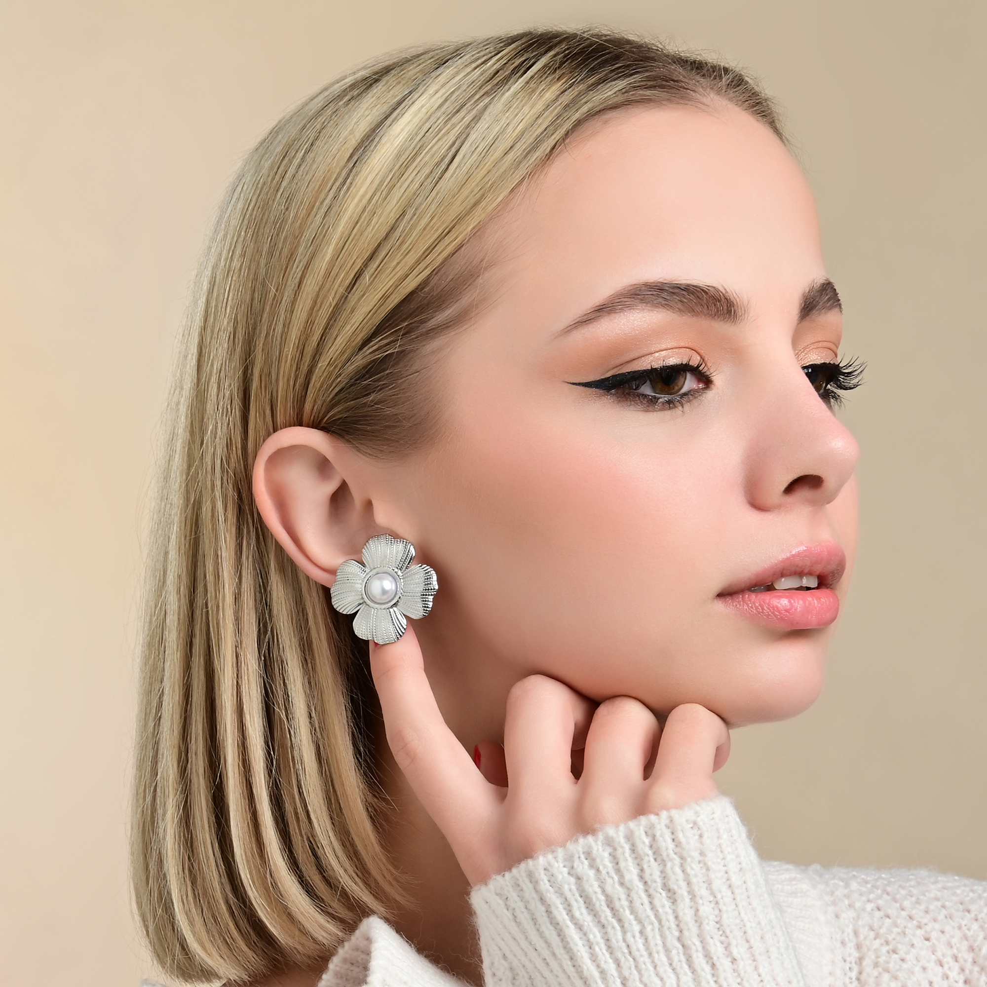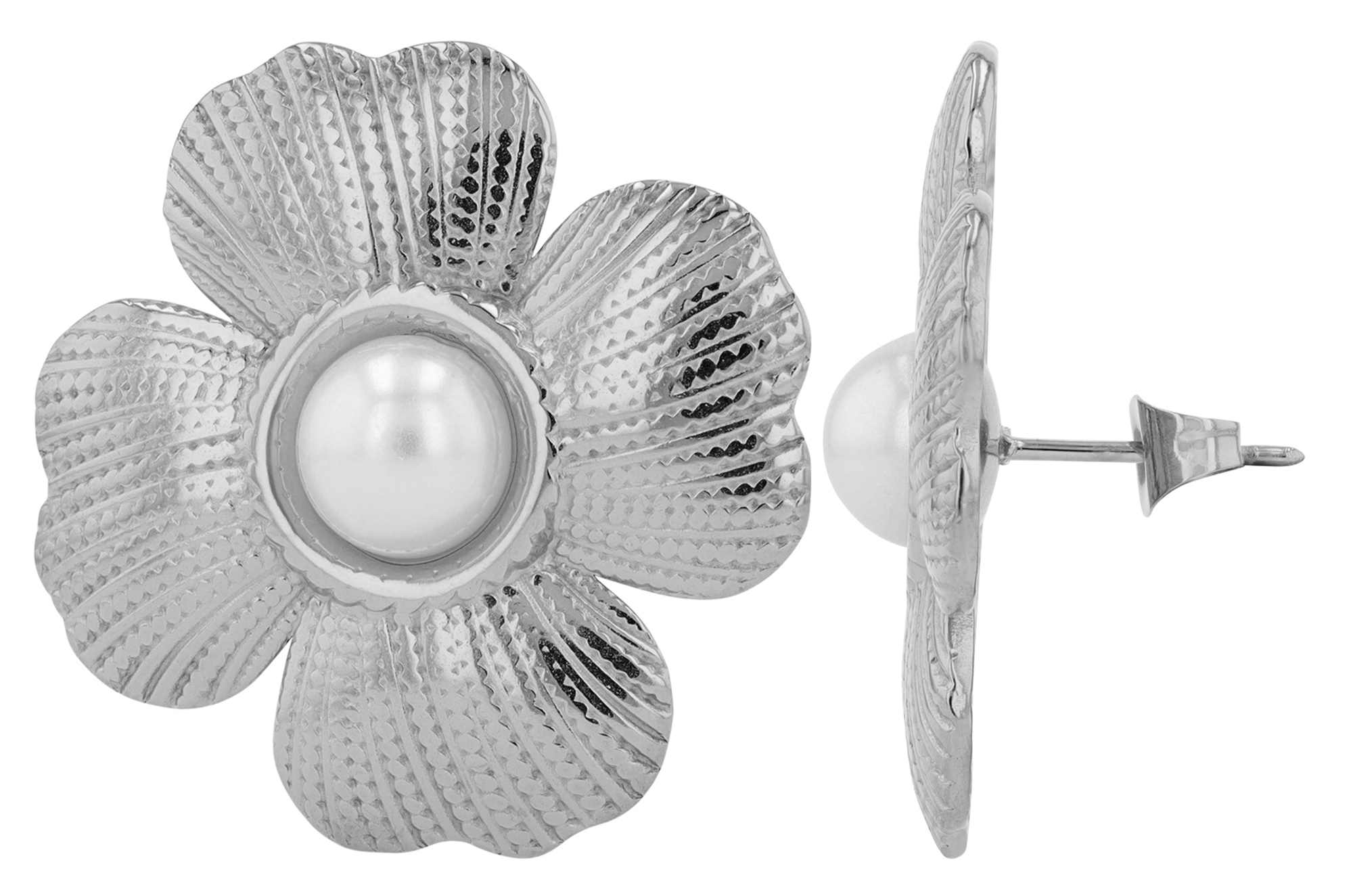 Productinformatie ""Steffi" Edelstahl Ohrstecker, Statement, Blume, silberfarben"