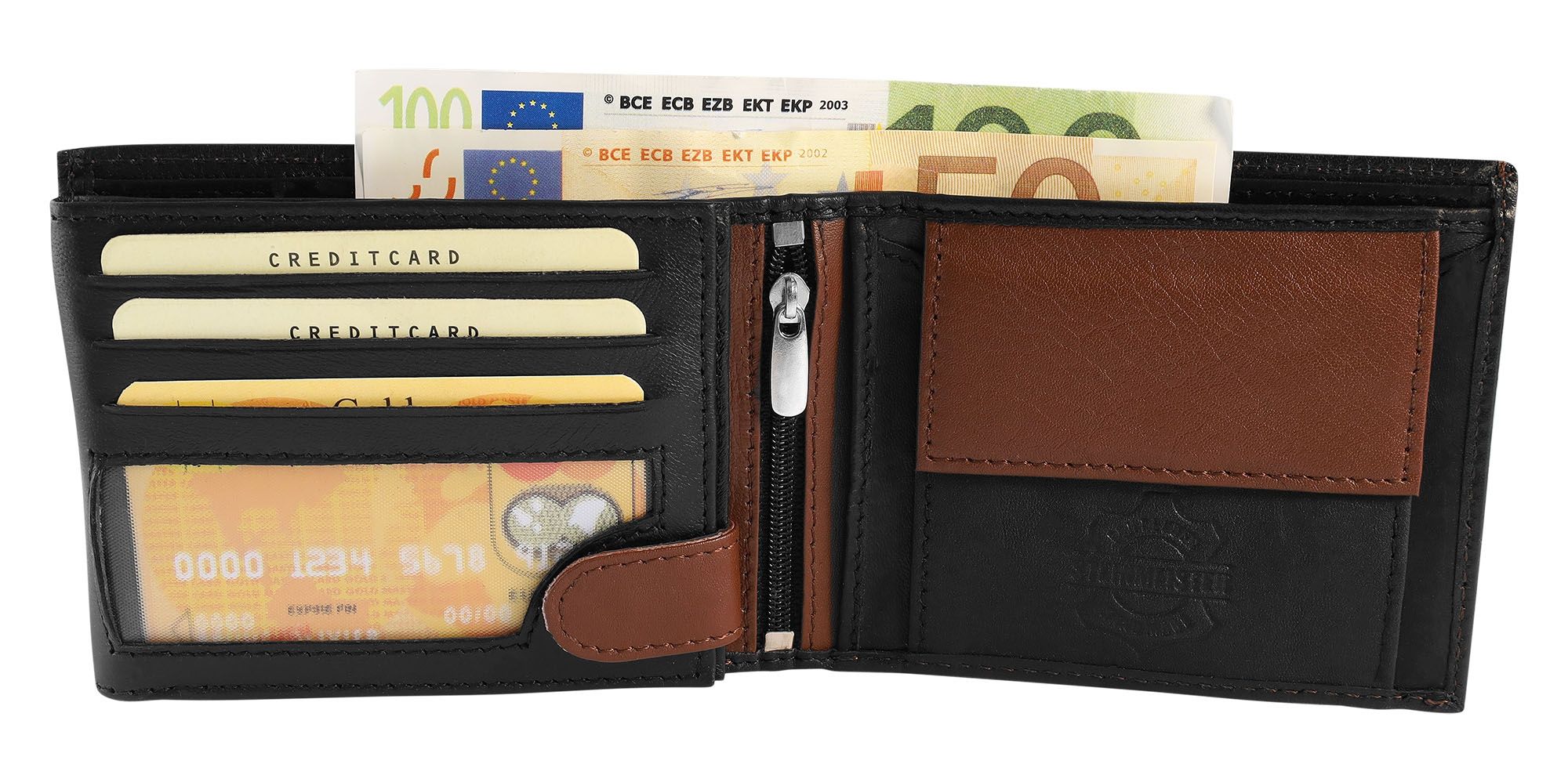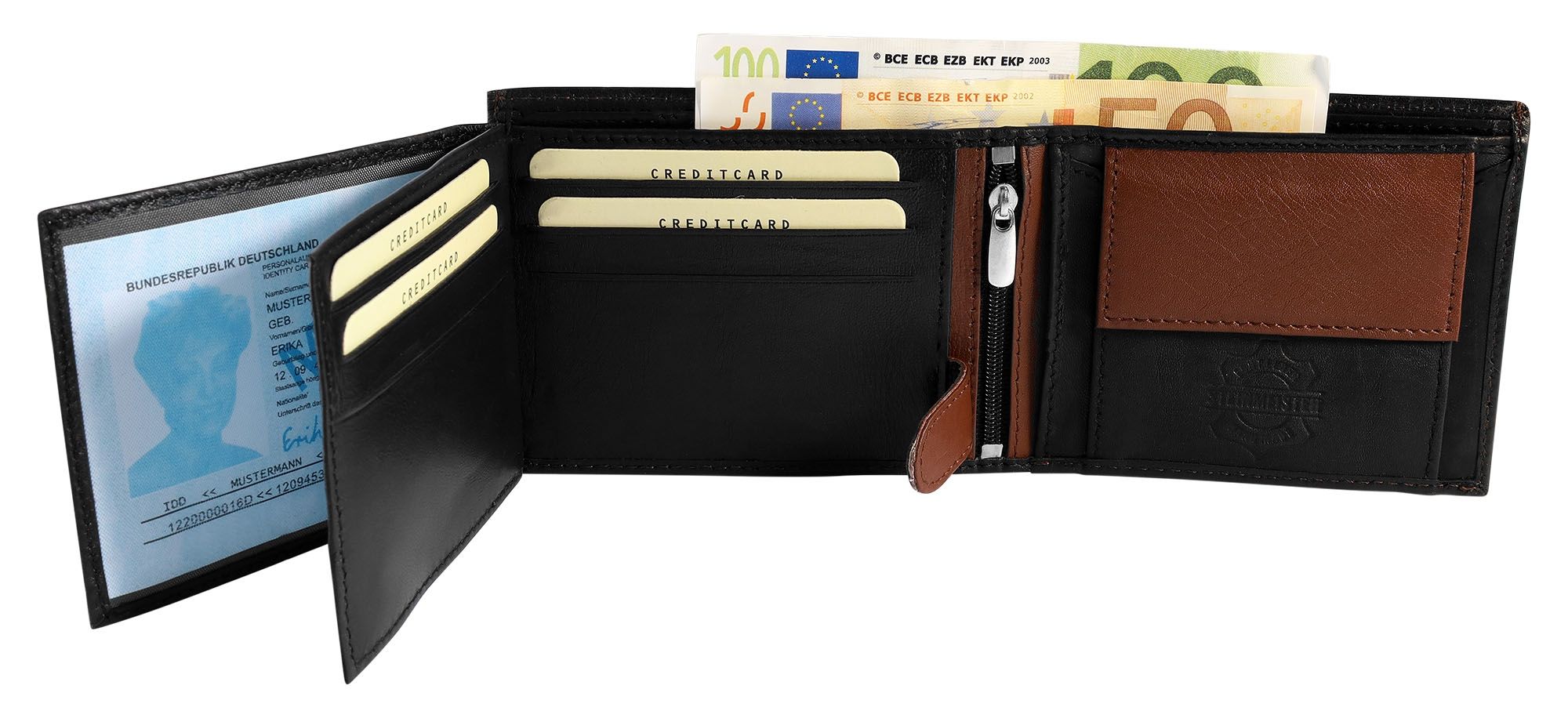 Productinformatie "SteinMeister Herren Geldbörse aus Echtleder. Format 12 x 10 cm, schwarz/braun"