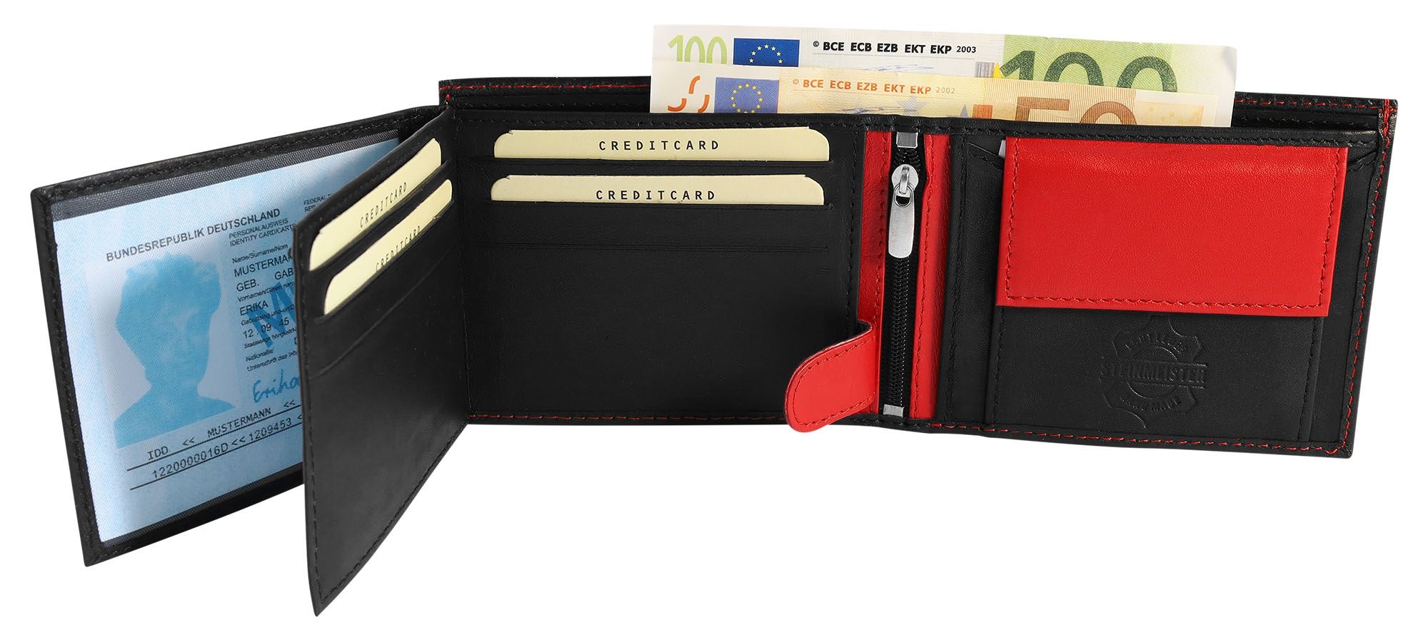 Productinformatie "SteinMeister herenportemonnee van echt leer. Formaat 12 x 10 cm, zwart/rood"