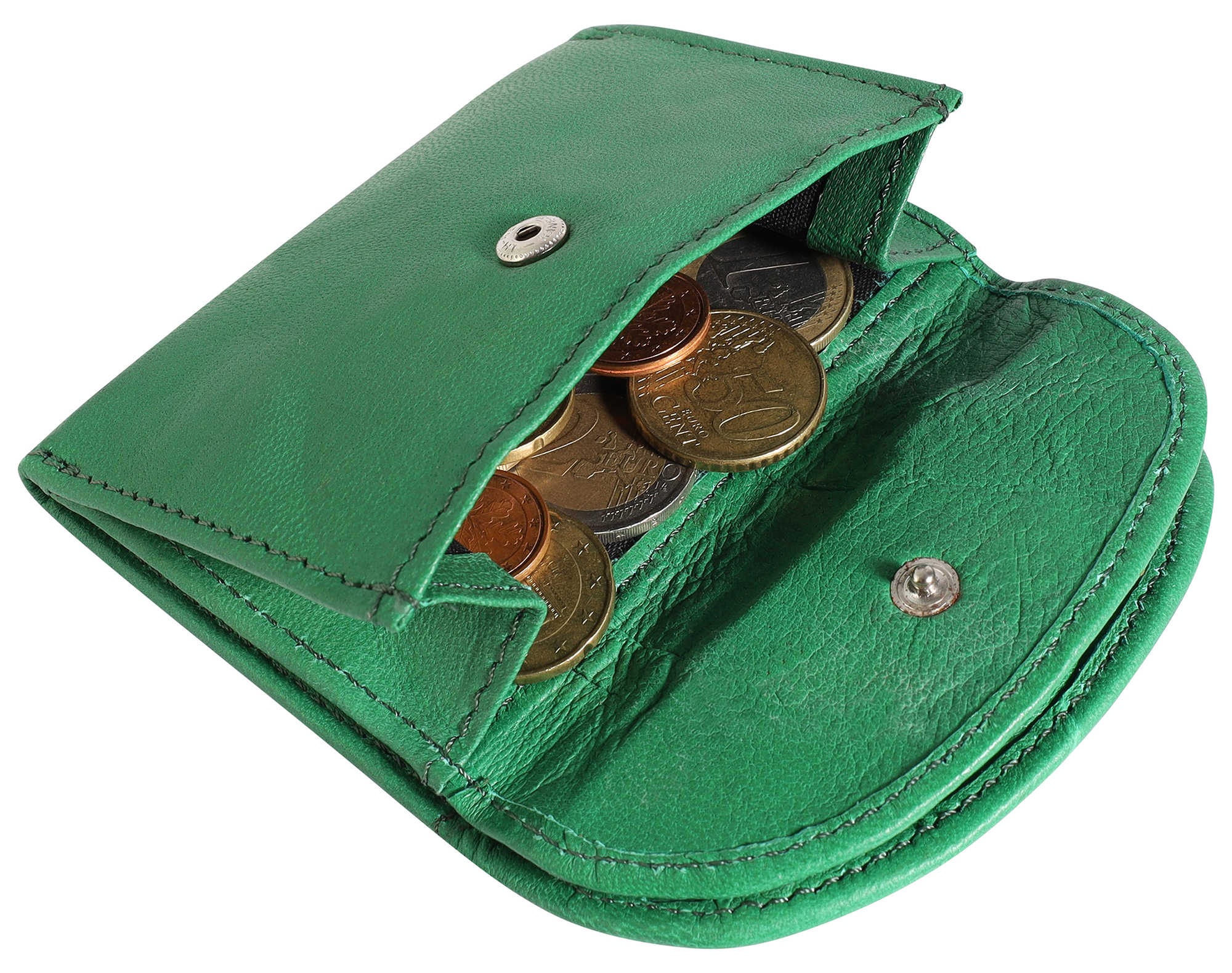 Großer Stauraum mit geringer Oberfläche ─ Die Unisex Lammleder Geldbörse besitzt besonders viele Fächer, welche durch zwei Druckknöpfe gesichert werden.