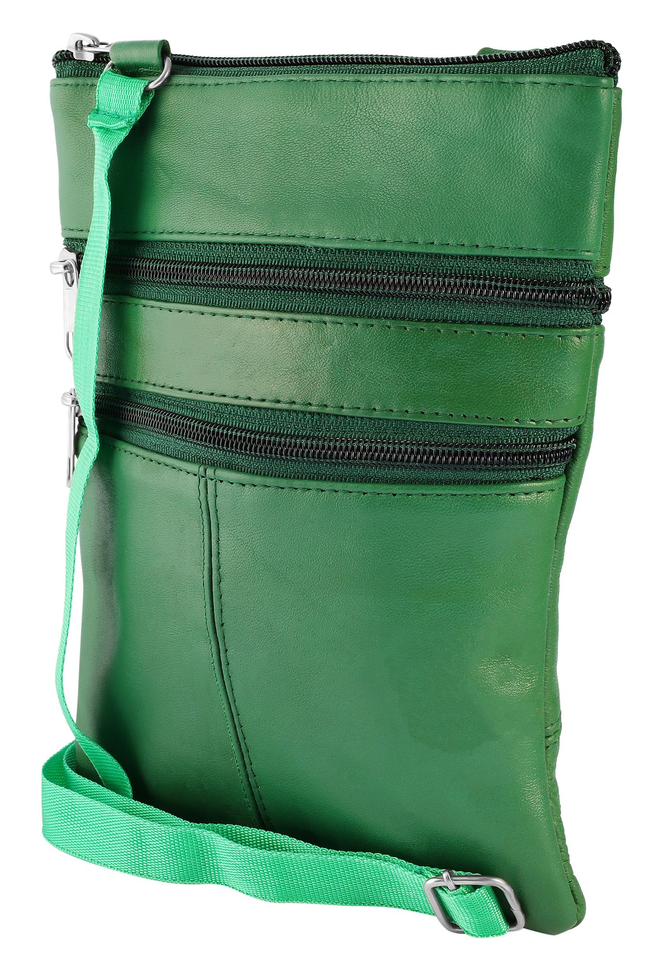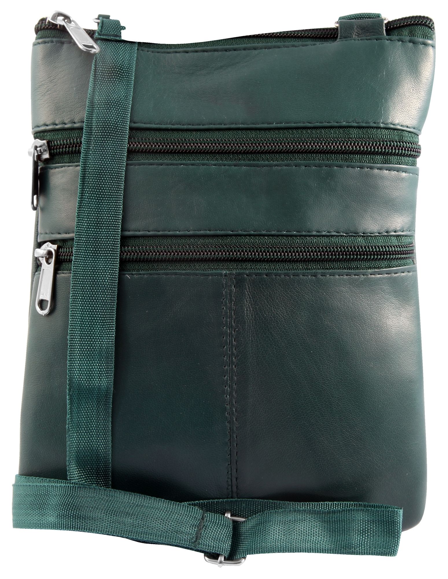 De donkergroene dameshandtas van het merk Steinmeister is gemaakt van echt leer en heeft een glad oppervlak. De tas heeft een lang donkergroen draaghengsel dat kan worden uitgeschoven tot een maximale lengte van 130 cm. Het handvat is aan beide zijden aan de tas bevestigd met 2 metalen oogjes. Het middelste hoofdvak van de tas kan worden geopend en gesloten met een donkergroene ritssluiting. Er zijn ook twee buitenvakken aan de voorkant van de handtas, die ook toegankelijk zijn via een donkergroene ritssluiting. Er is ook een groot buitenvak aan de achterkant van het modeaccessoire, dat ook geopend en gesloten kan worden met een donkergroene ritssluiting. De handtas is 23 cm lang, 18 cm breed en 1,5 cm diep. Een modieuze handtas die superpraktisch is dankzij het relatief kleine formaat.