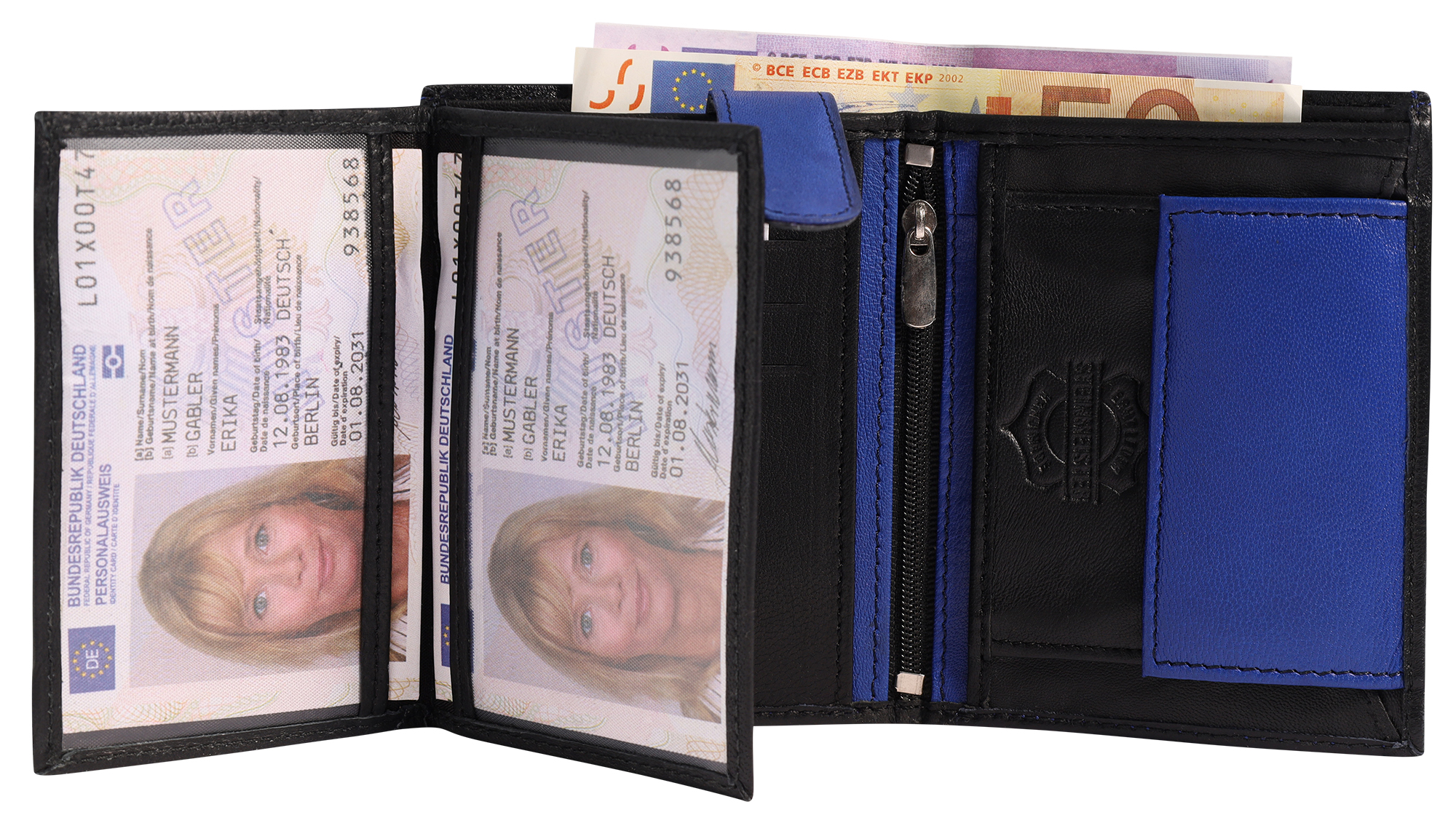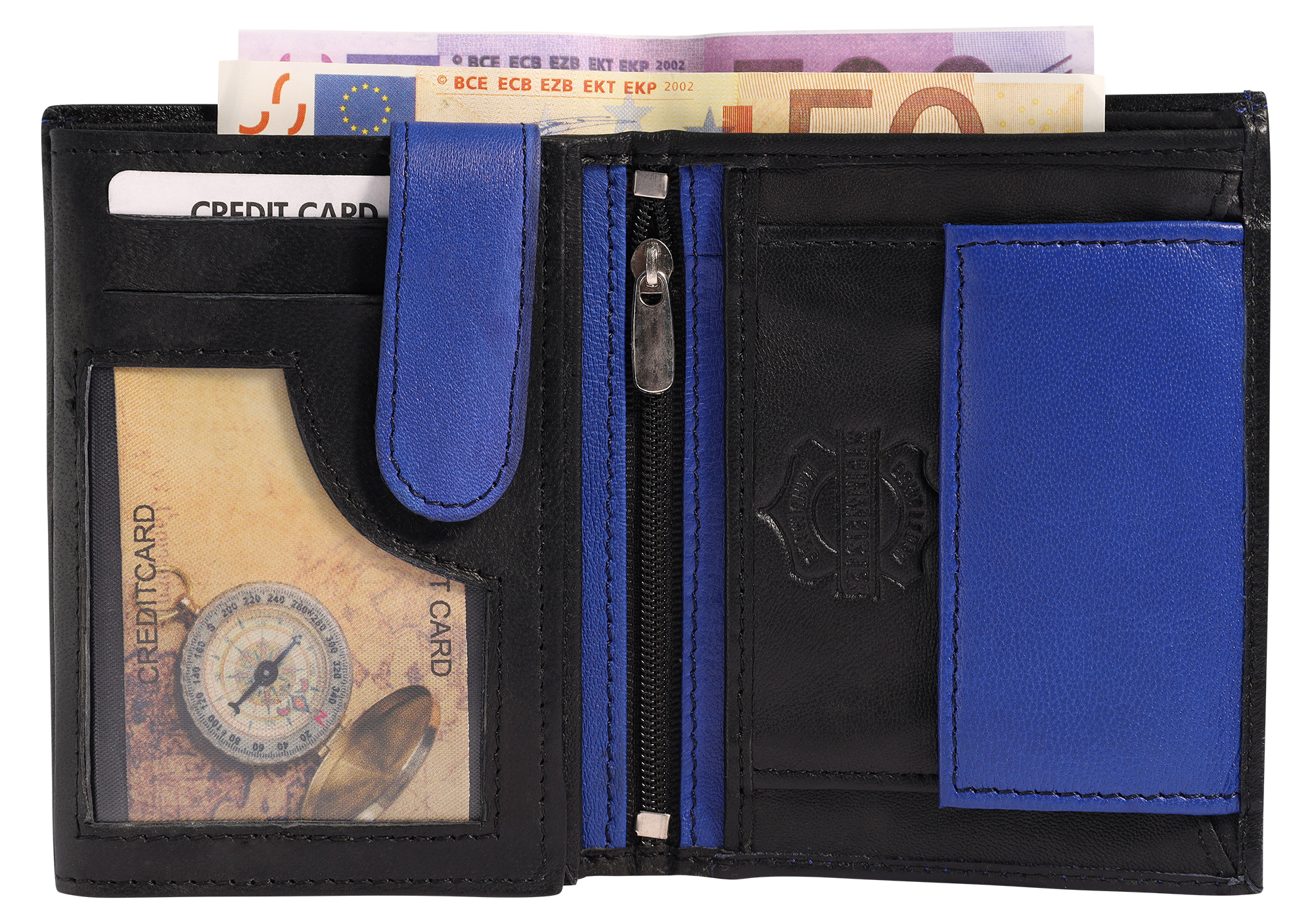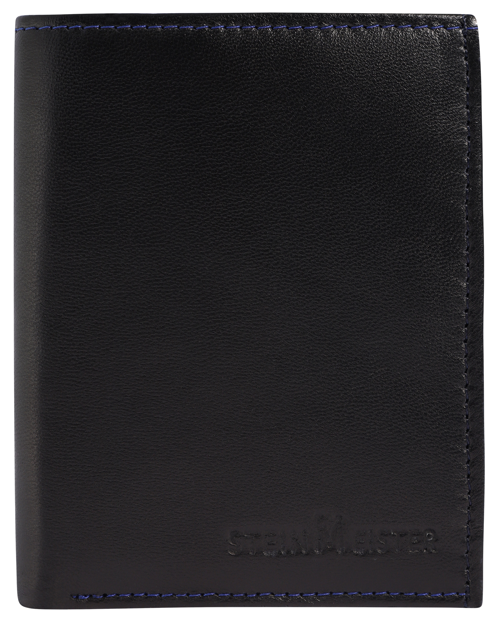 Productinformatie "Steinmeister Geldbörse aus Echtleder, Hochformat, schwarz/dunkelblau"