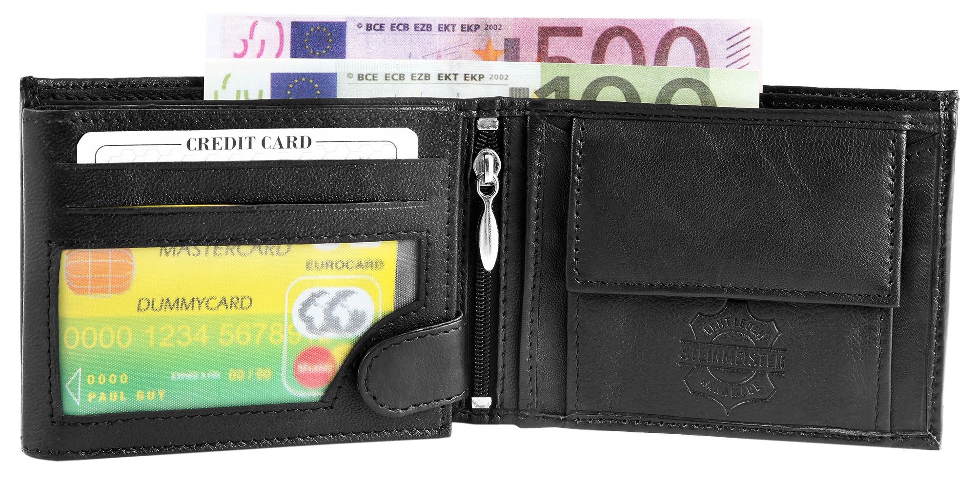 Productinformatie "Steinmeister Geldbörse aus Echtleder, Querformat, schwarz"