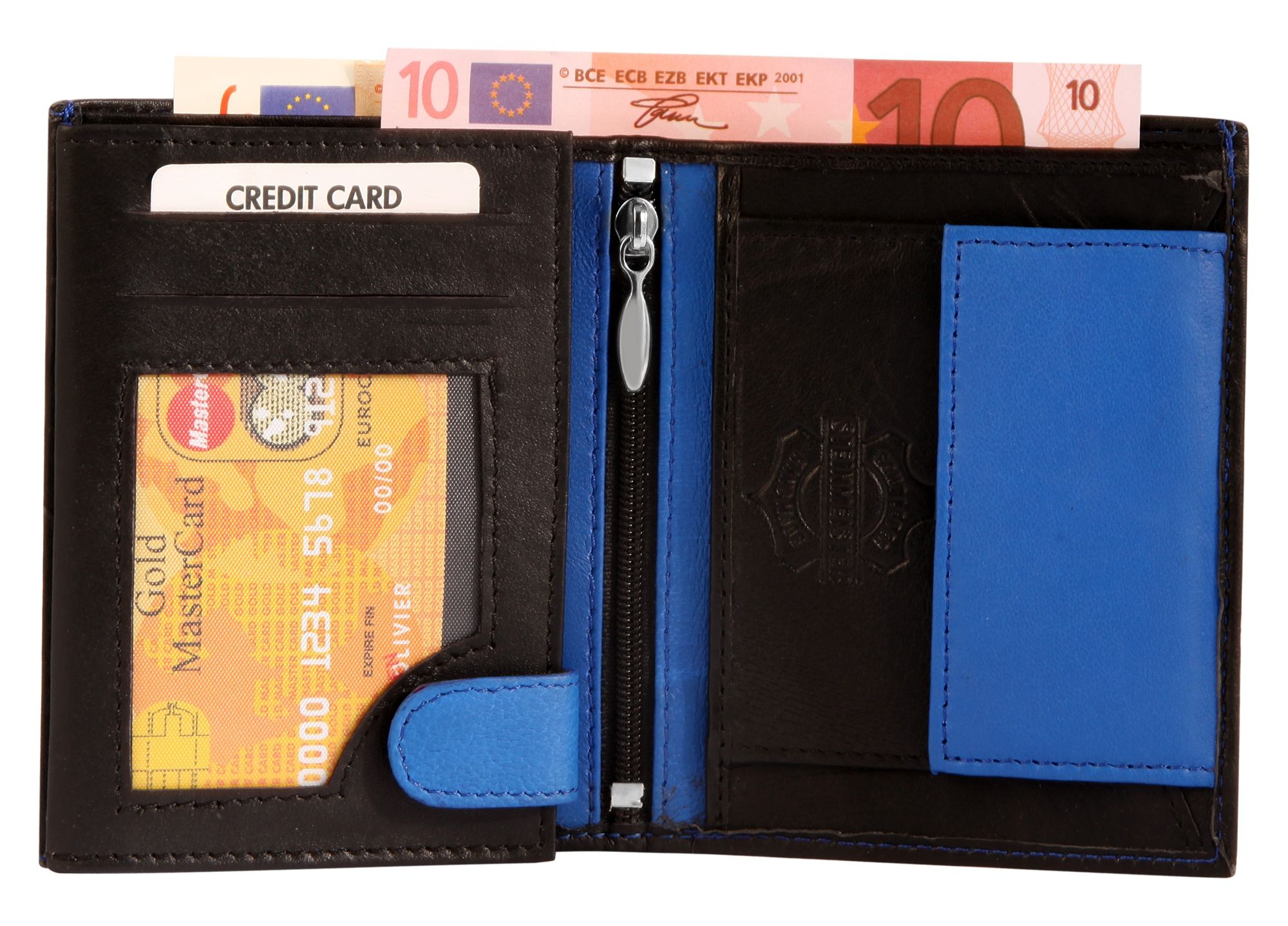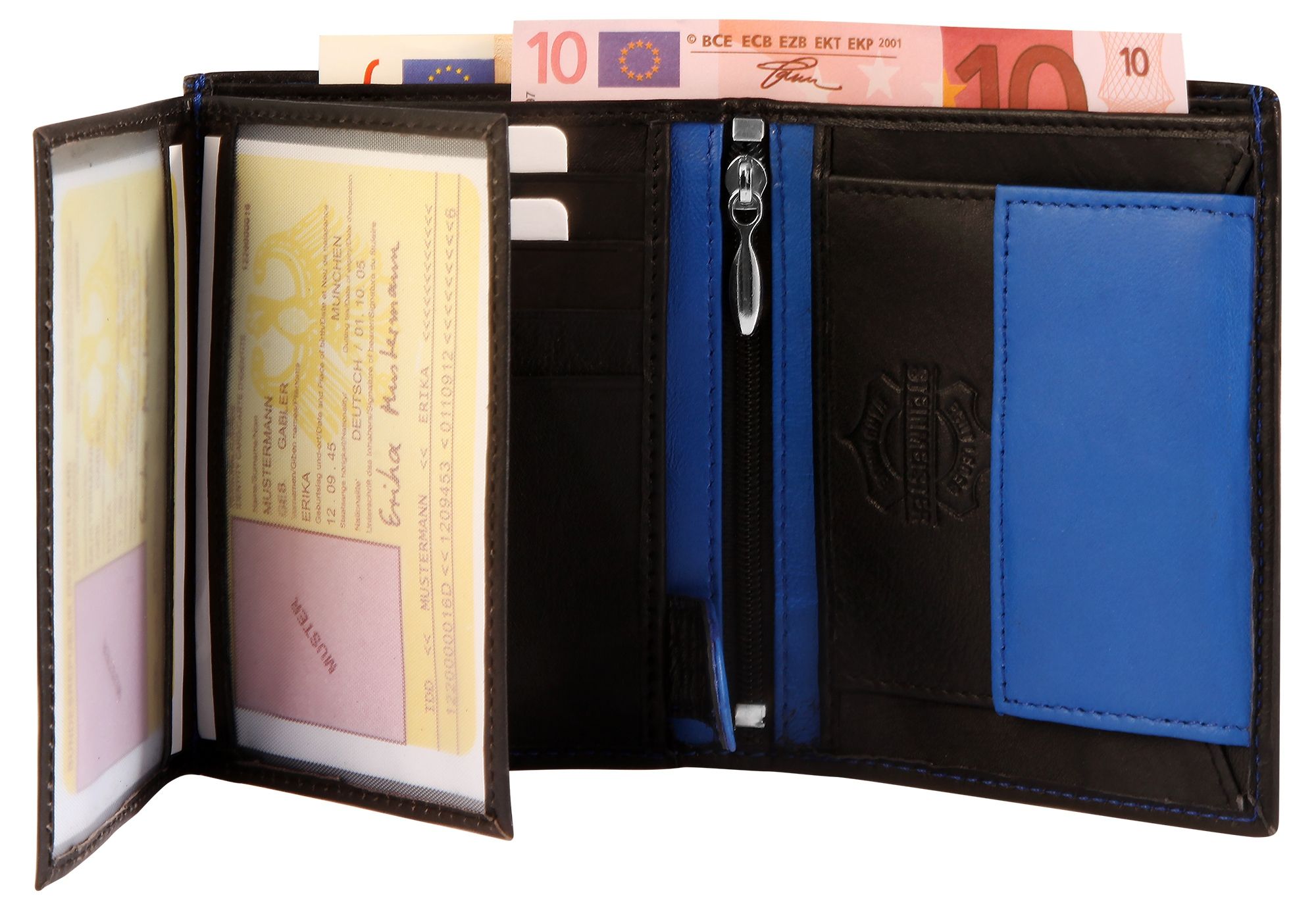 Productinformatie "Steinmeister herenportemonnee van echt leer, staand formaat, zwart/blauw"
