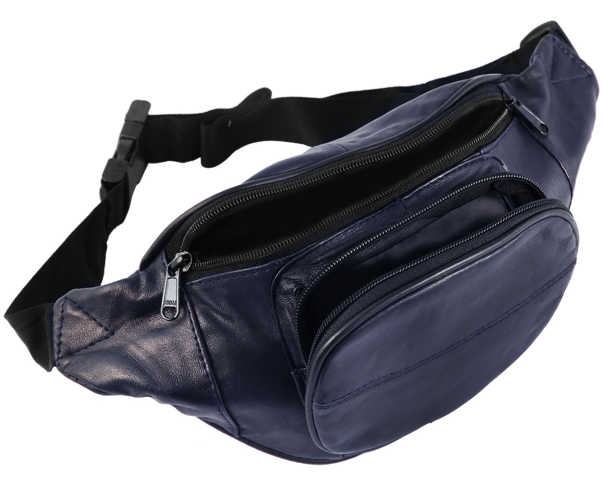 Productinformatie "Steinmeister heuptasje van echt leer, donkerblauw"