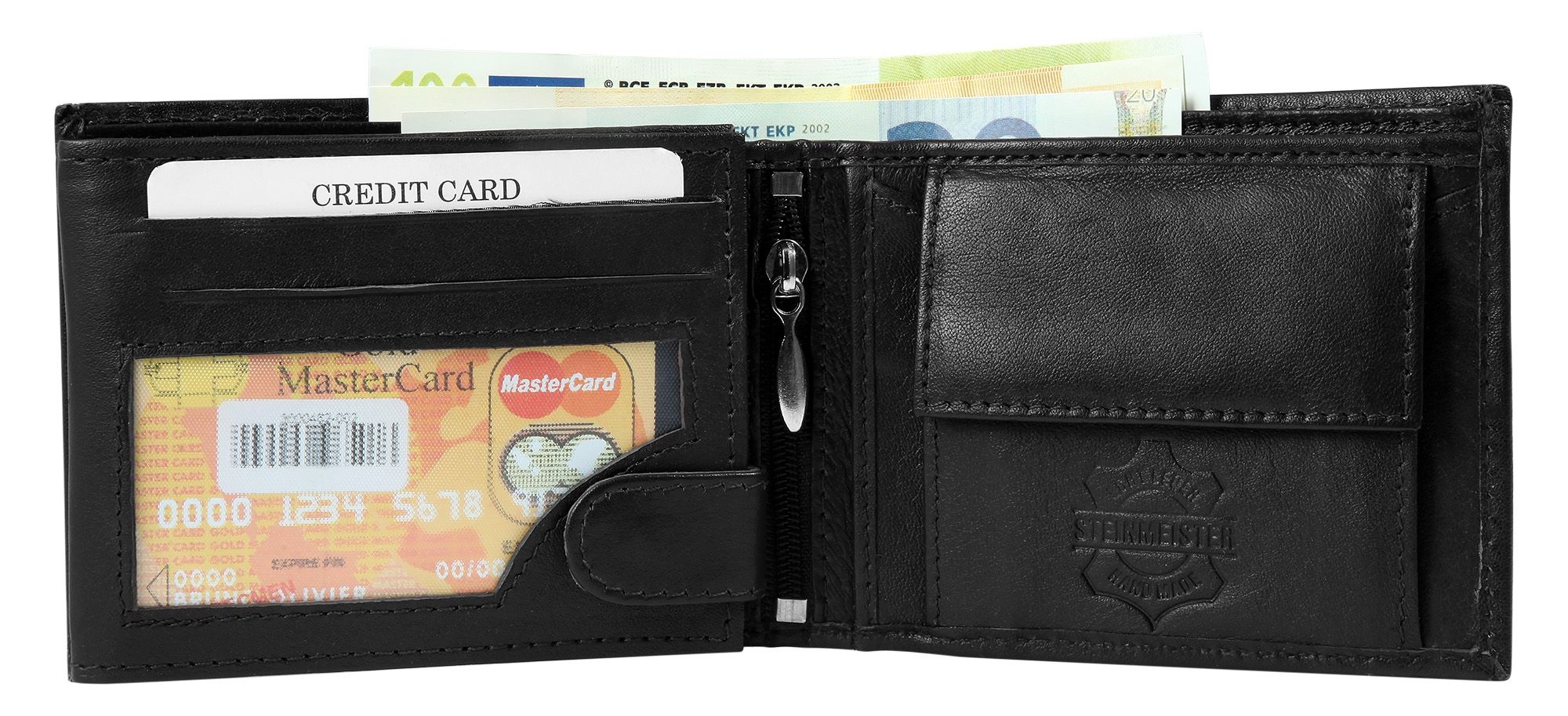 Productinformatie "Steinmeister lamsleren portemonnee met dubbel muntvak, zwart"