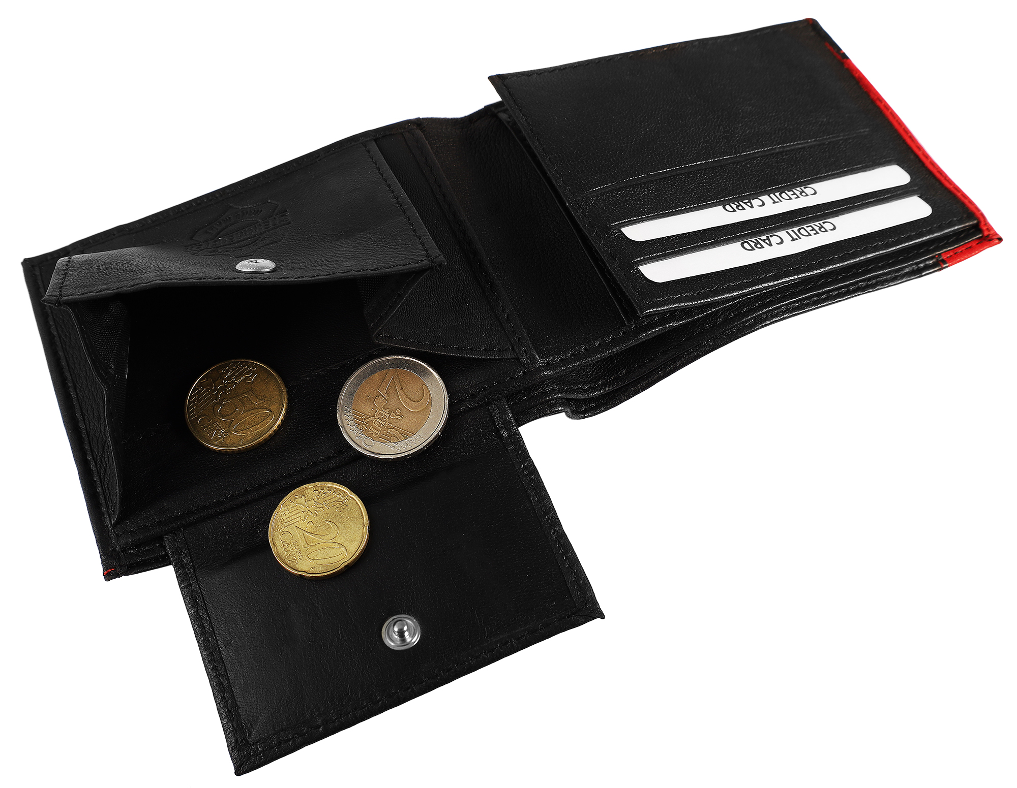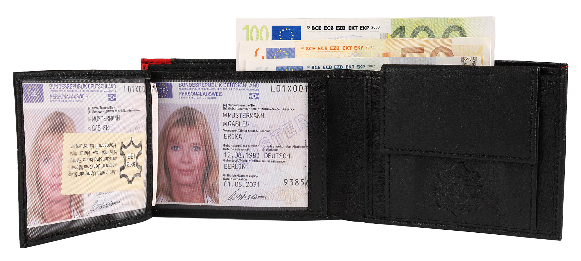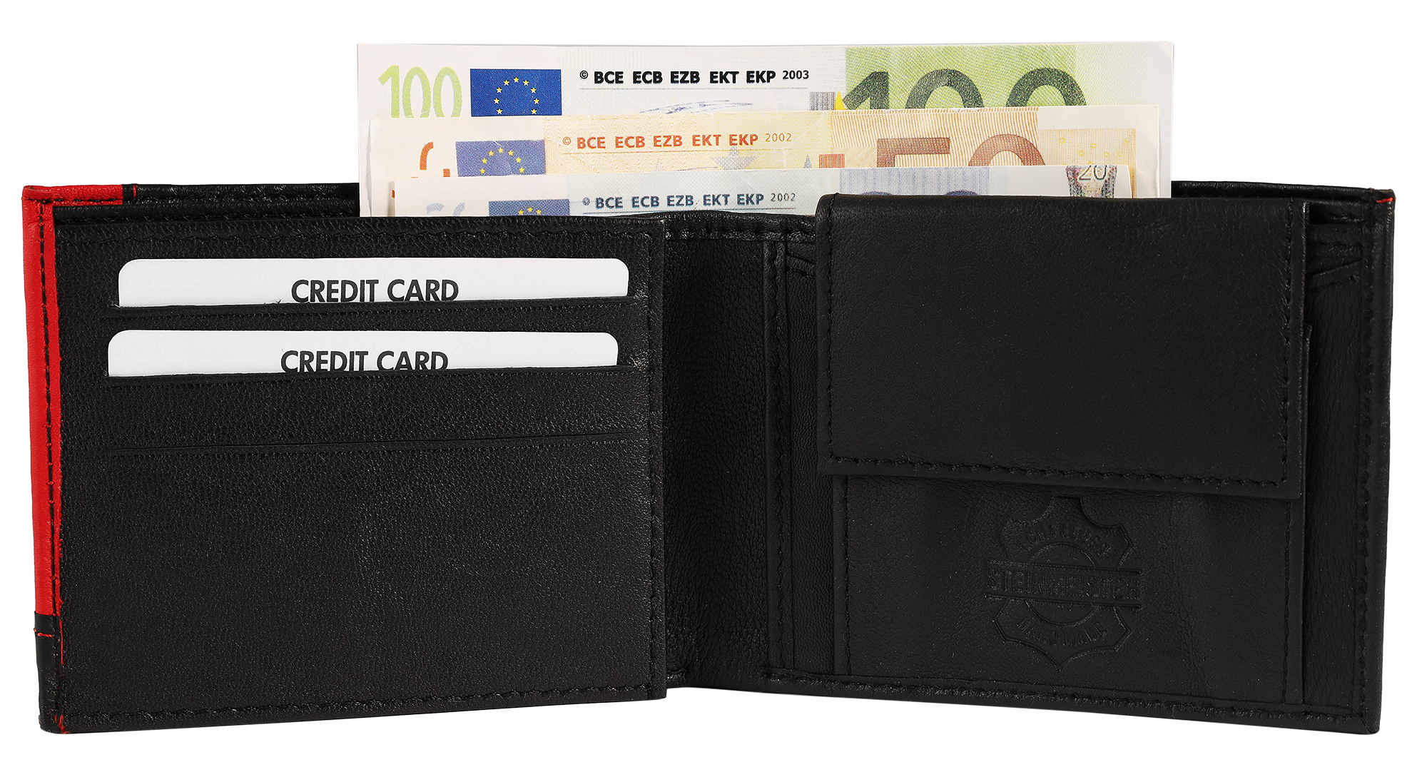 Productinformatie "Steinmeister portemonnee van echt leer, liggend formaat, zwart/rood"