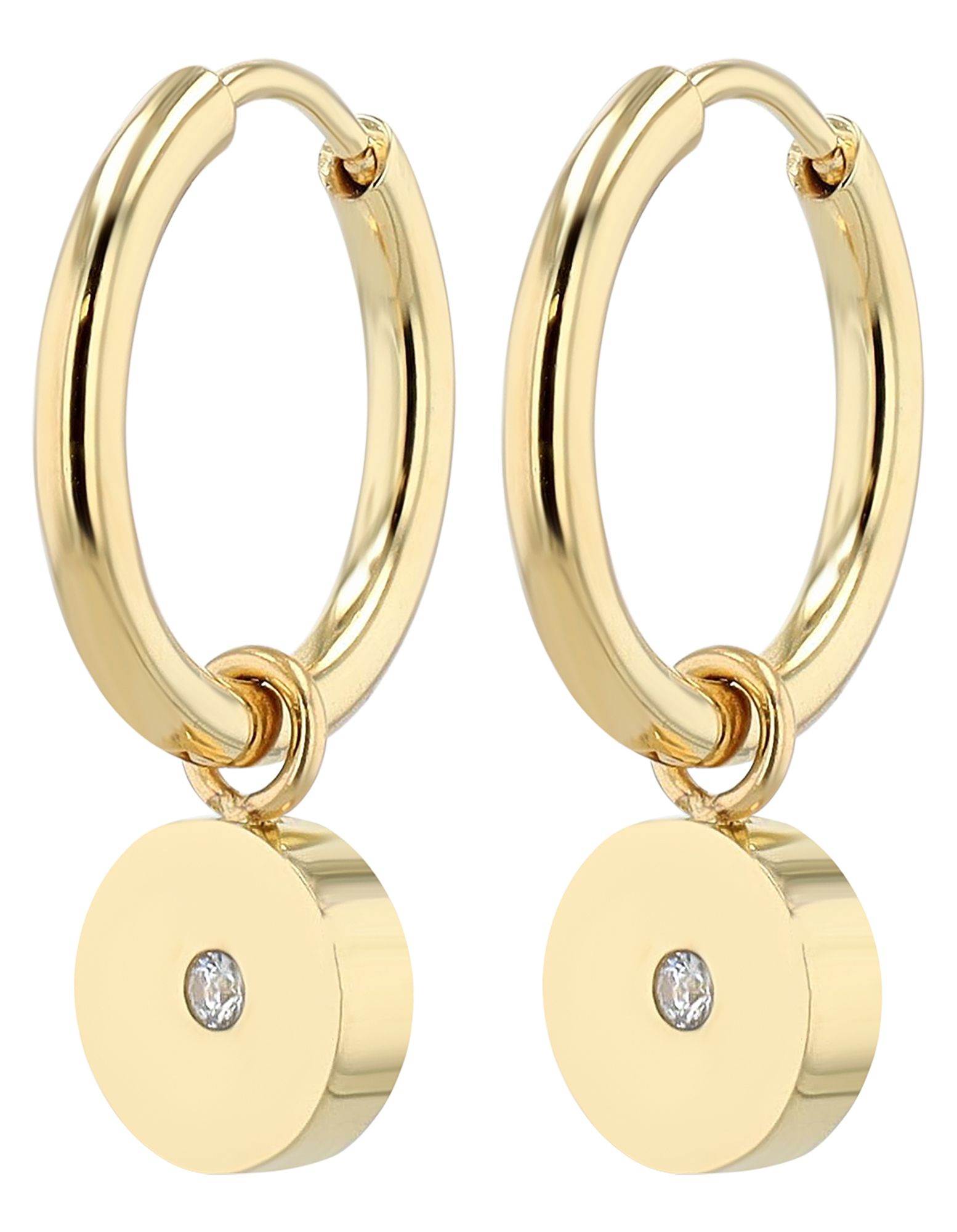 Productinformatie ""Stintje" roestvrijstalen creool Ø 12 mm, ronde hanger (afneembaar), goudkleurig"
