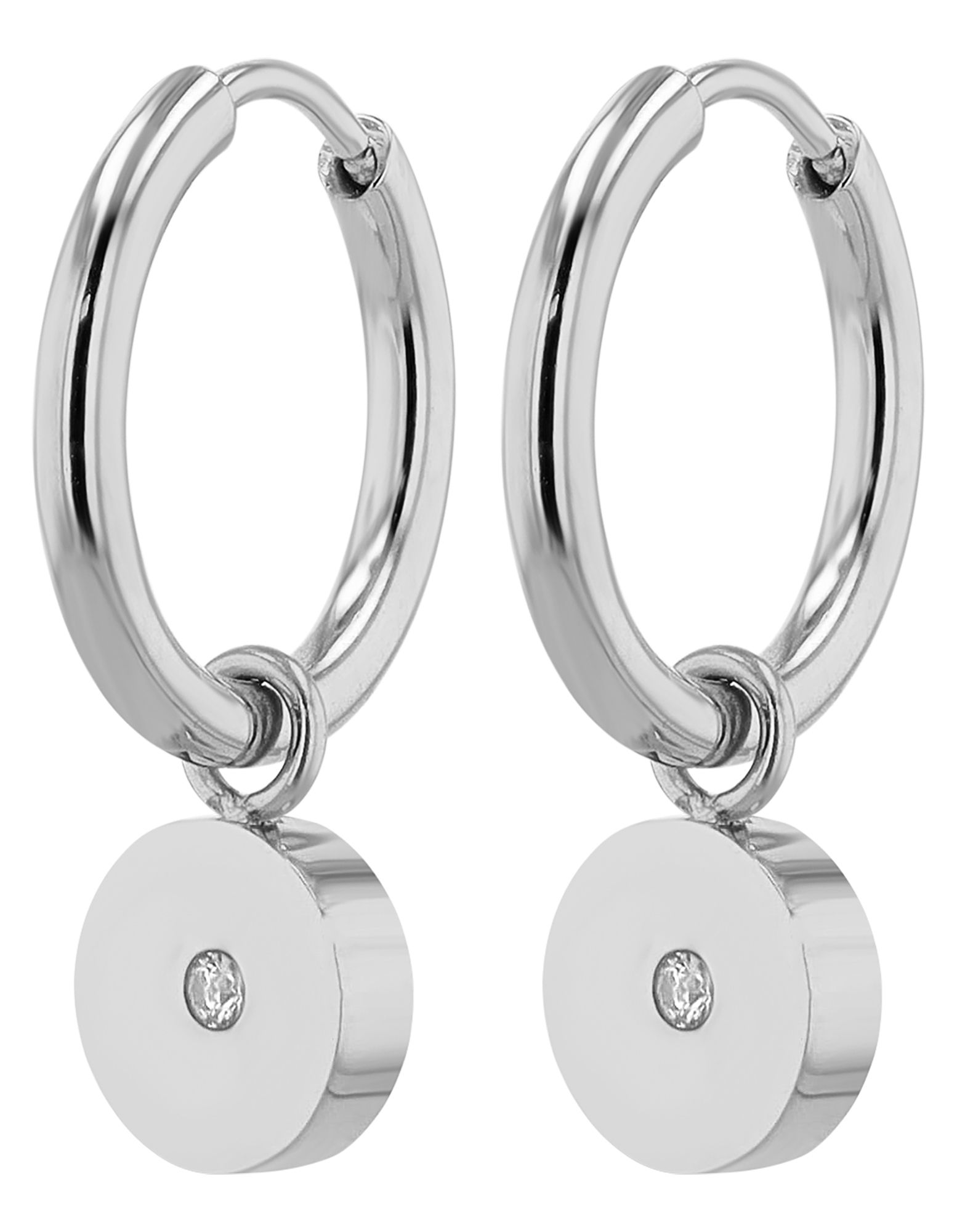 Productinformatie ""Stintje" roestvrijstalen creool Ø 12 mm, ronde hanger (afneembaar), zilverkleurig"