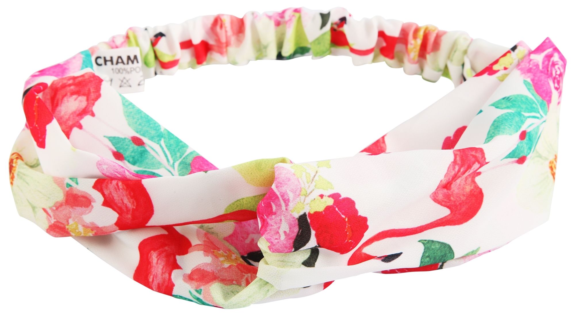 De kleurrijke dameshoofdband van het merk Cham Cham is het must-have accessoire voor de zomer. Hij is gemaakt van polyester en verkrijgbaar in verschillende designs en kleuren. Het geeft ook een vrolijke touch aan je outfit en zorgt ervoor dat je haar perfect op zijn plaats blijft. De afmetingen zijn 6 cm breed en 55 cm lang. Dankzij de elastische band is de hoofdband ook flexibel en past zich aan elke hoofdomvang aan.
