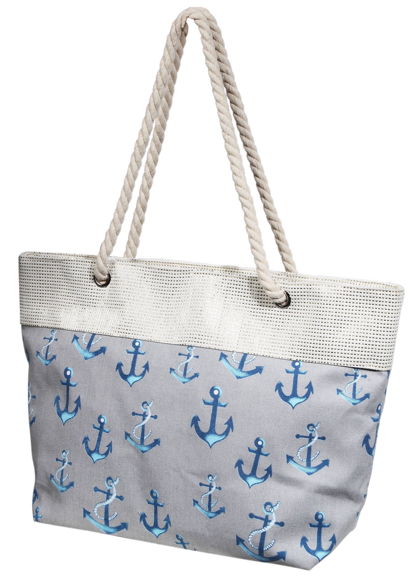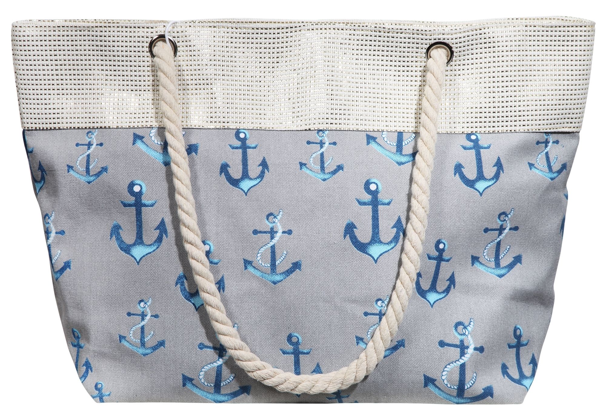 Productinformatie "Strandtas van textiel met ankermotief in grijs"
