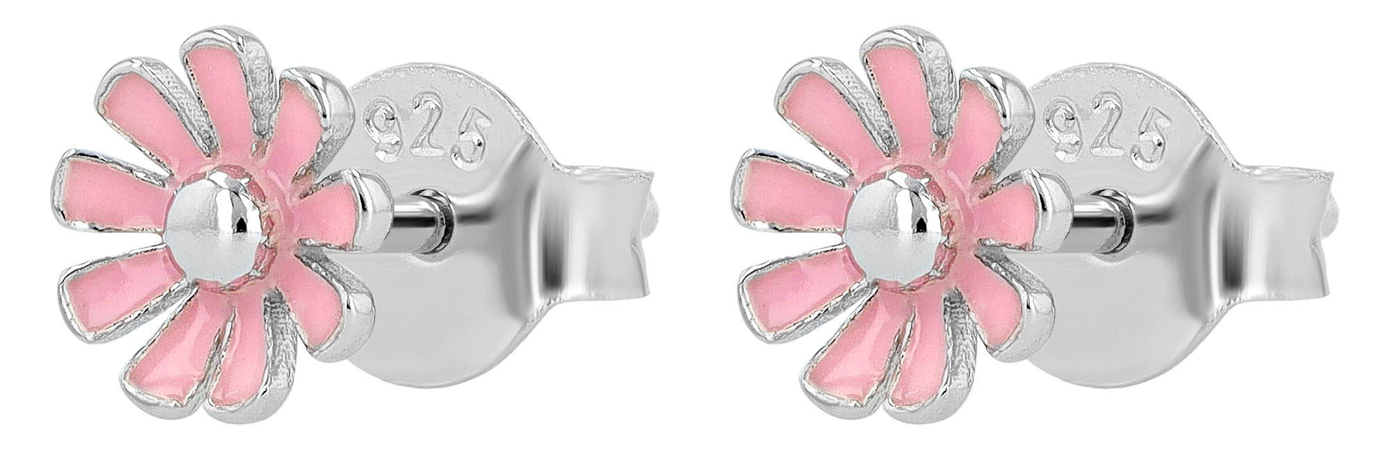 Productinformatie ""Susi" 925/- Echt Silber, Kinder Ohrstecker, rosa Blume/ Blüte, rhodiniert"