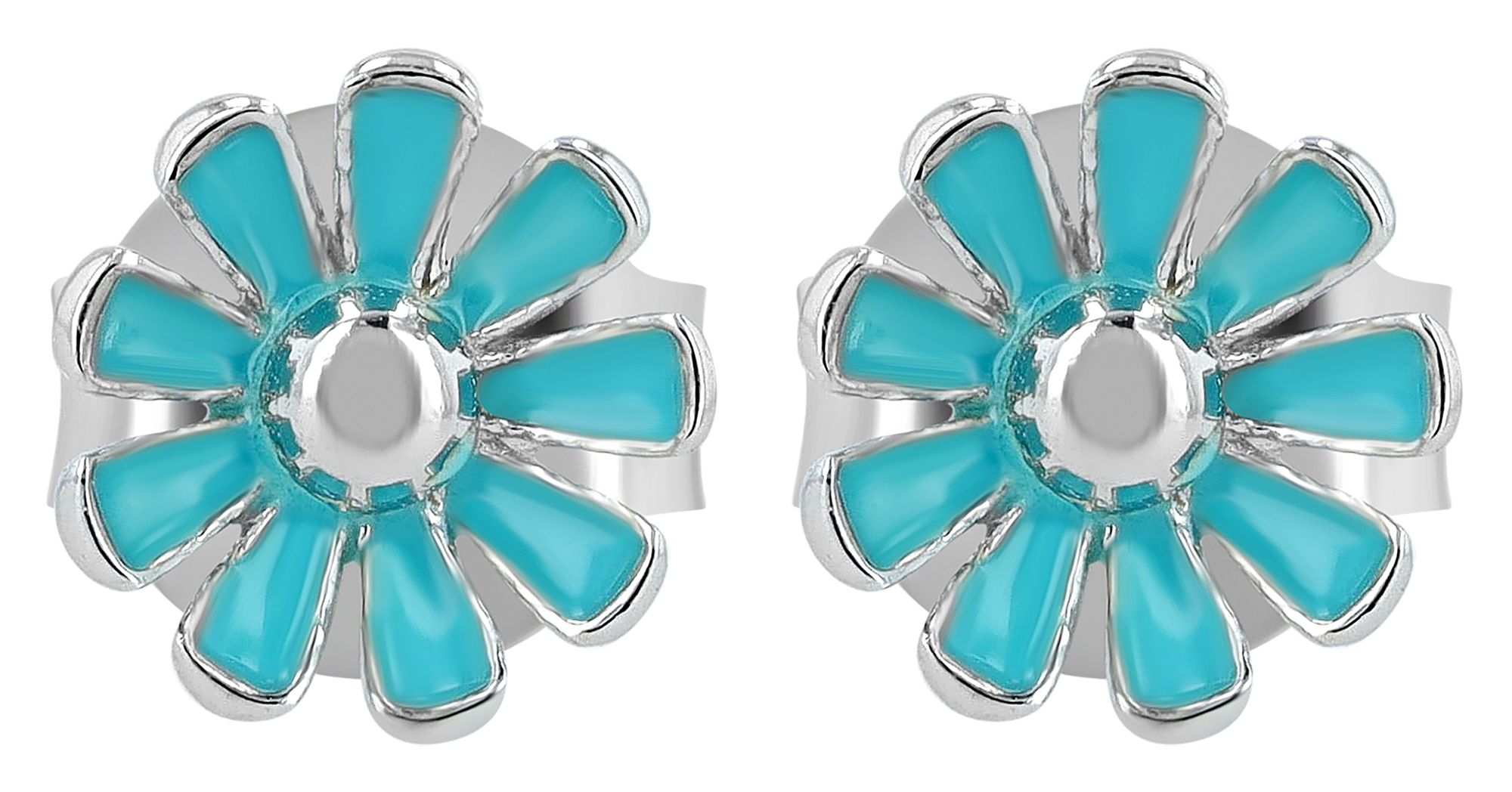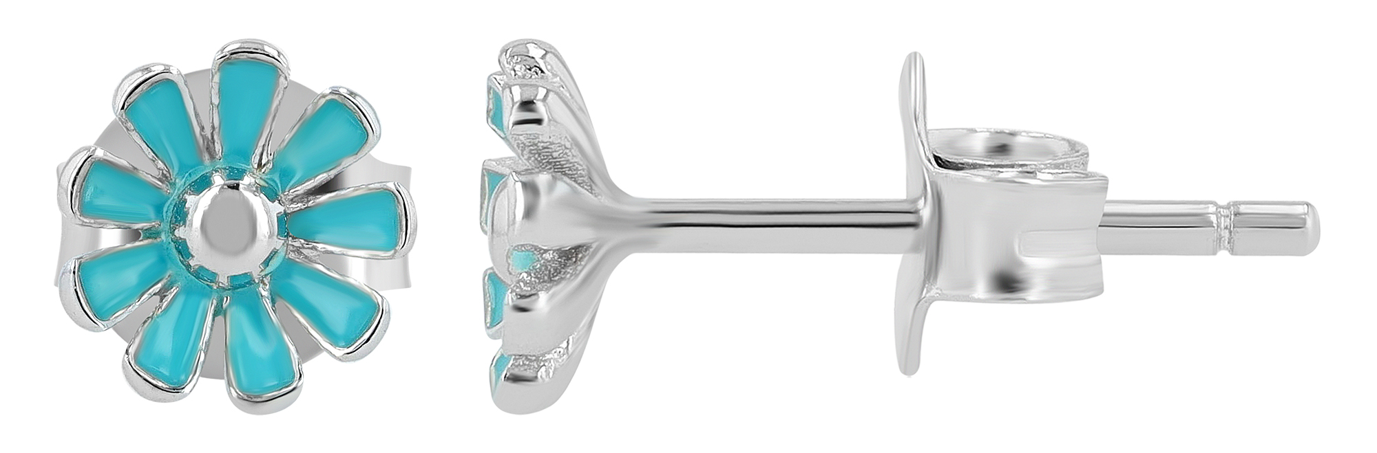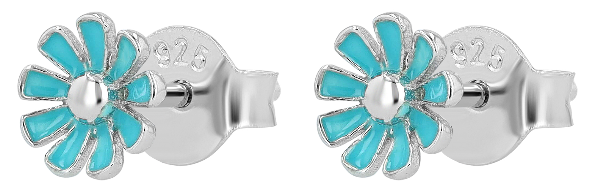 Productinformatie ""Susi" 925/- Echt Silber, Kinder Ohrstecker, türkise Blume/ Blüte, rhodiniert"